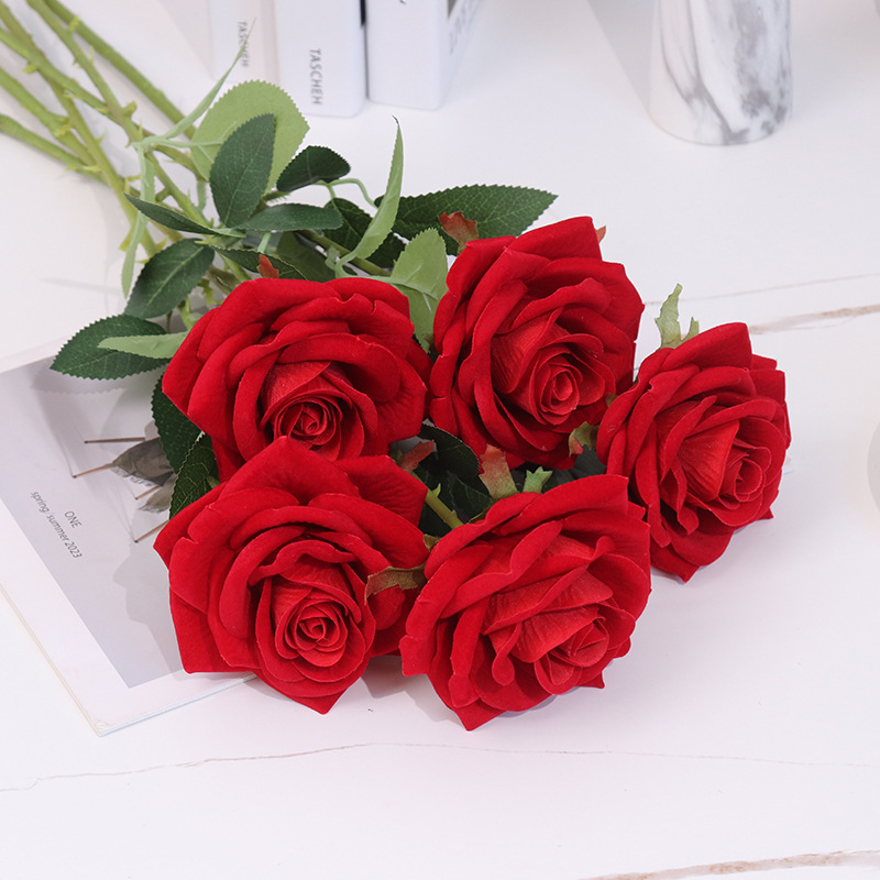 模造花一本のベルベットのバラの観光スポット滝薔薇装飾ウェディング花材食卓飾り花芸絹花