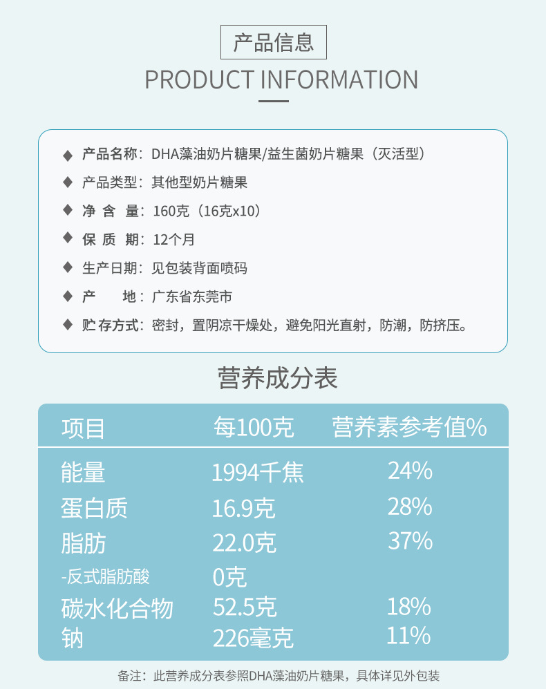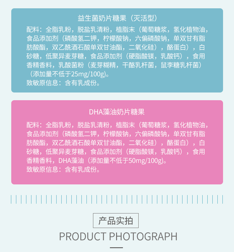 ミルクスライスキャンディープロバイオティクスdha藻油児童赤ちゃん乾燥ミルクスライス160g/80枚児童間食