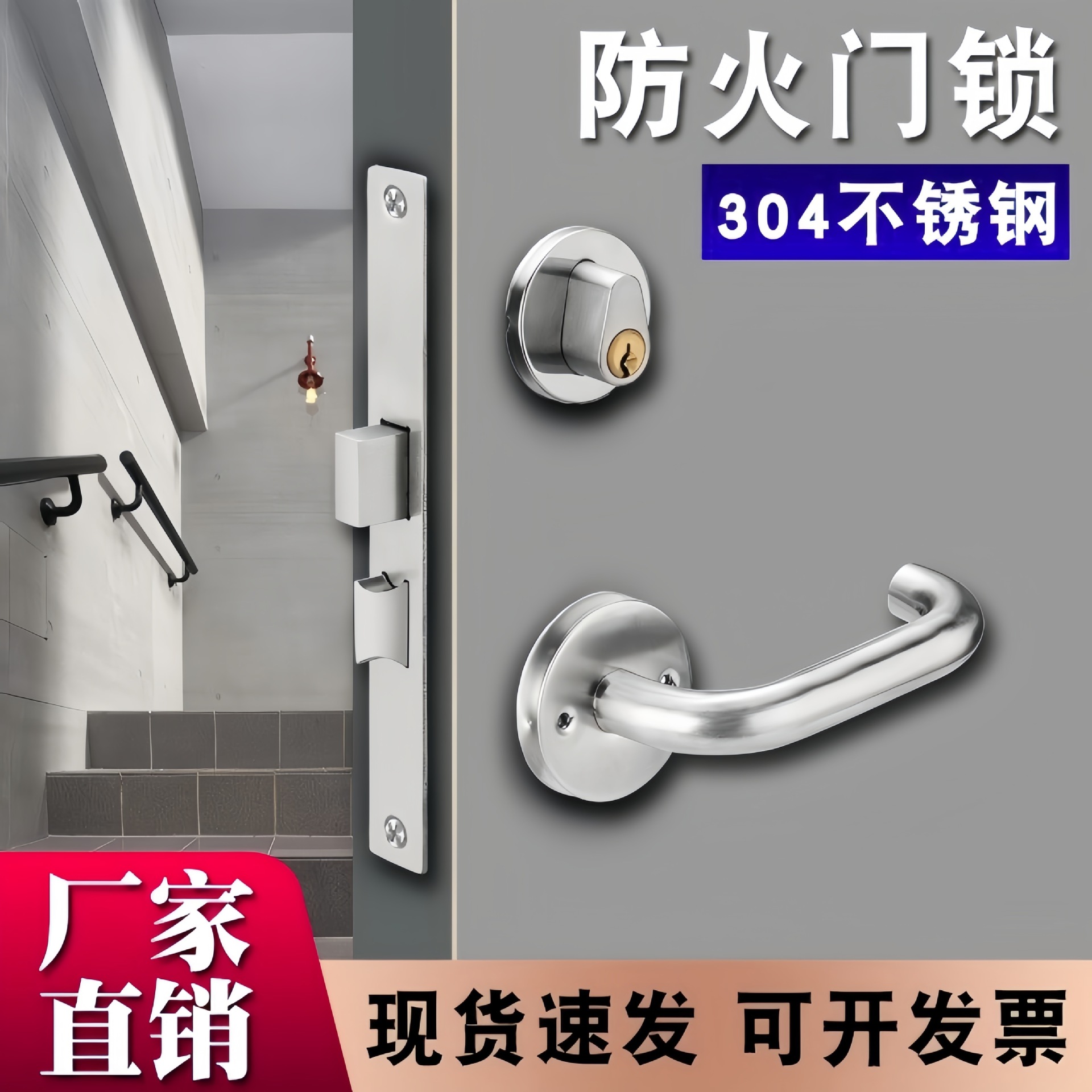 防火扉ロック、消防通路、安全扉ハンドル、避難通路、ステンレス製ロックドアハンドル、防火専用