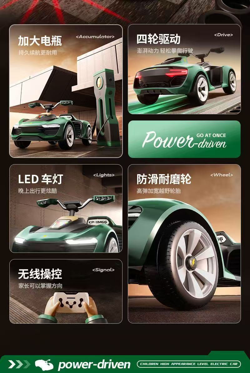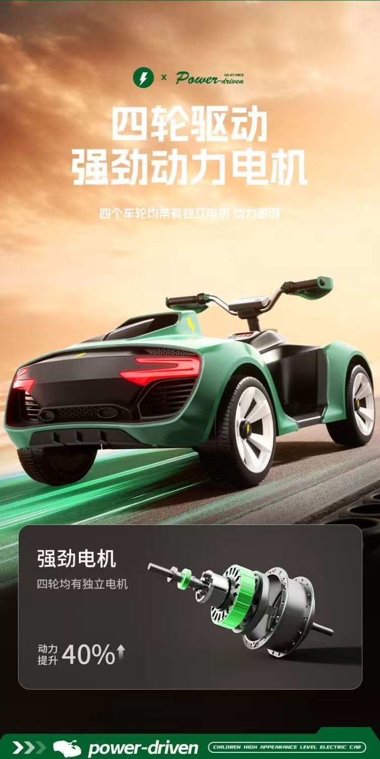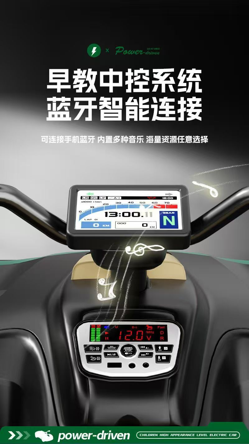 APP三种操控模式,带电子摇摆功能,双人座椅(可加配三人座椅),加大加宽油门踏板,车身酷炫LED灯光,12V7超大电瓶,380*2电机,2.4G蓝牙遥控器,智能中控集成音乐板,可插U盘,外接蓝牙