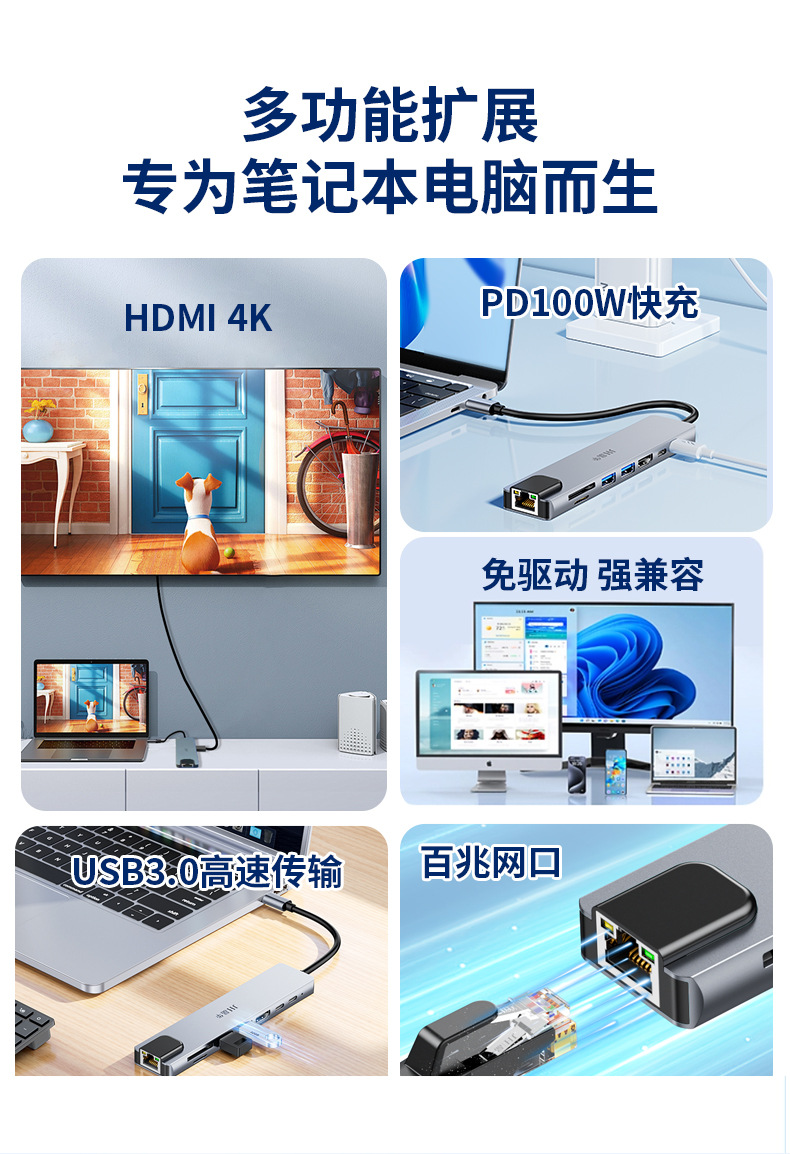 国境を越えたメーカーの八一体型拡張ドックtype-c変換カードHDMI多機能ノート変換器卸売り