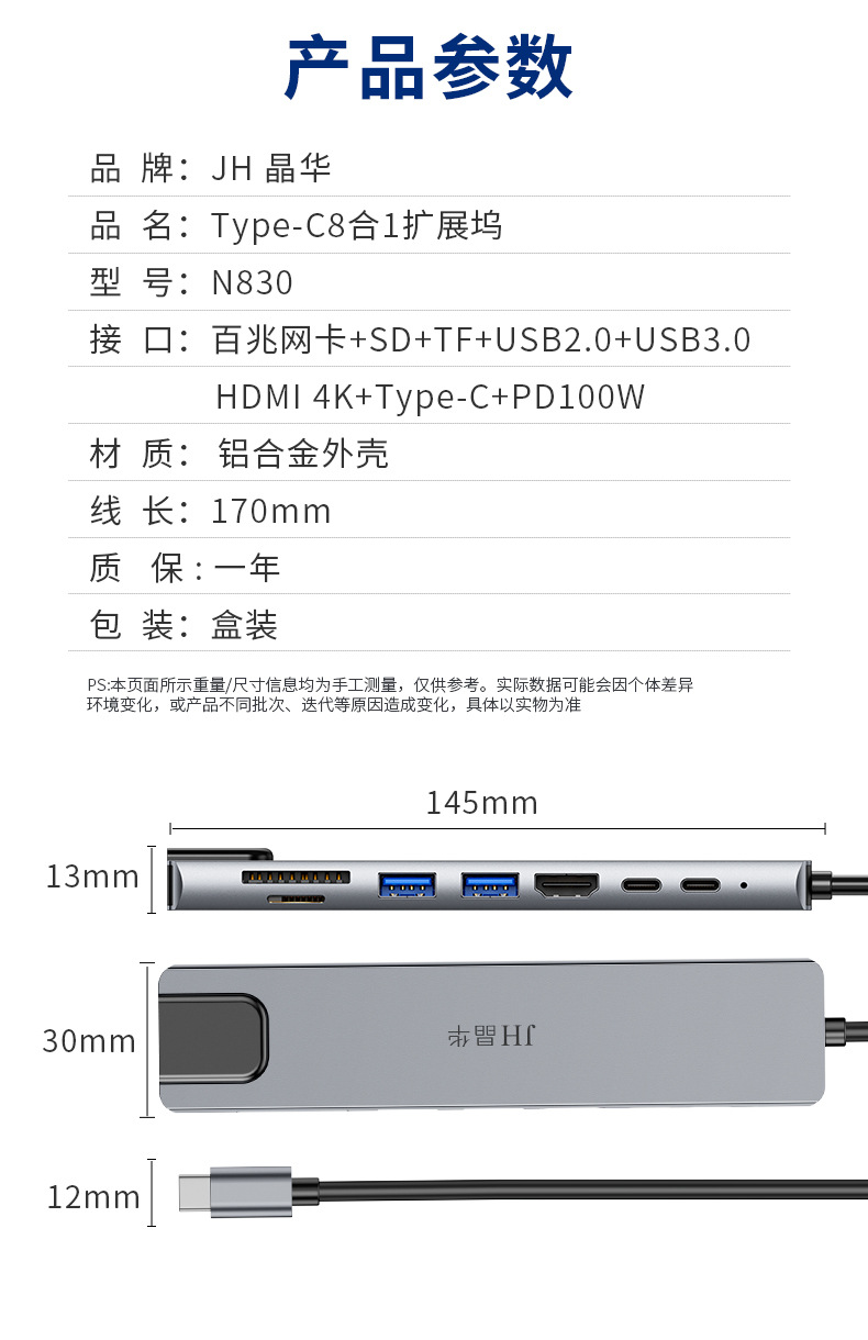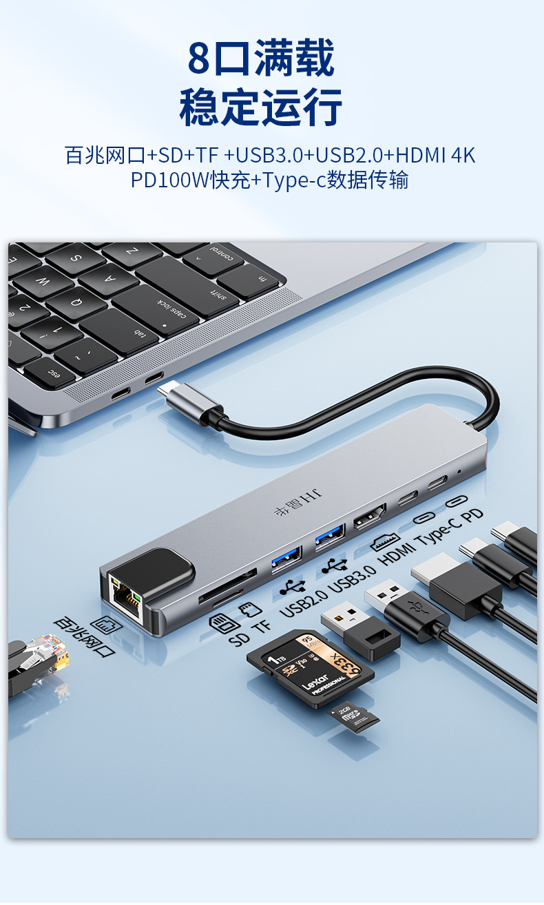 八合一拡張ドックusb3.0拡張ドックTF/SDカードリーダーノート拡張ドックusbハブ