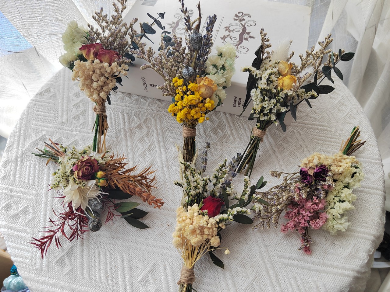 クリエイティブなドライフラワーミニブーケは女神の日にお土産をプレゼントします。