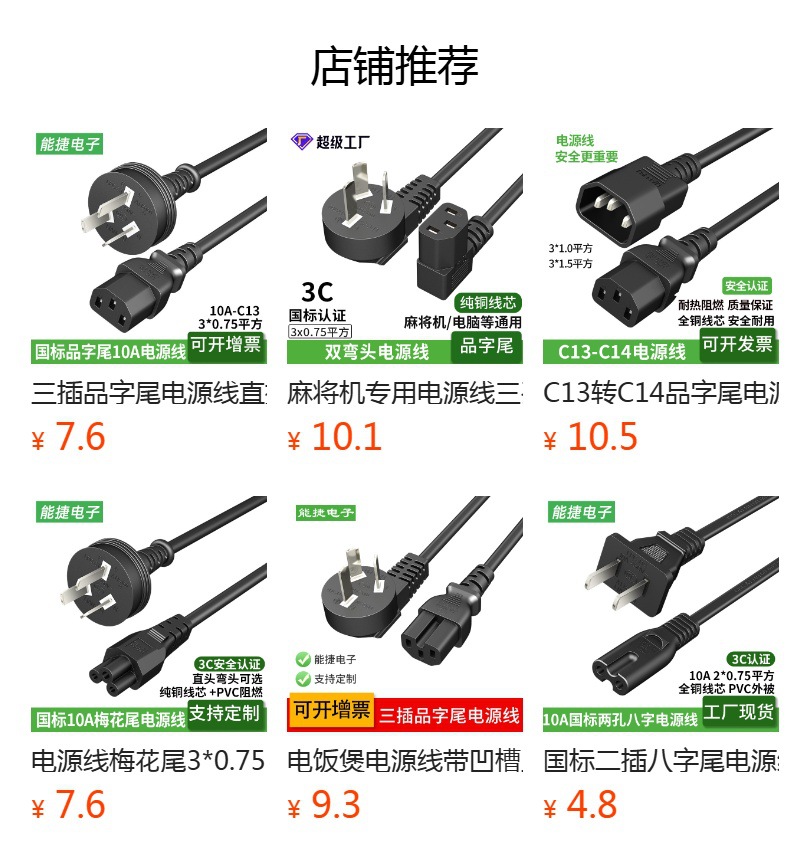 3C认证国标三插弯头品字尾电源线电脑孔品插头线电饭煲电饭锅