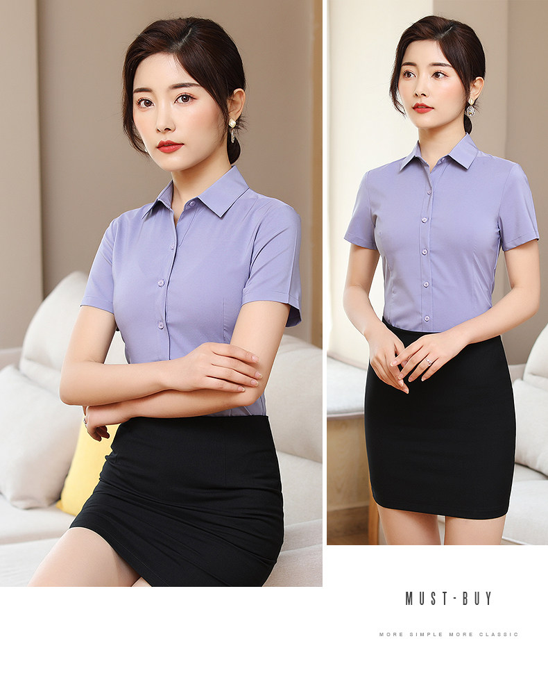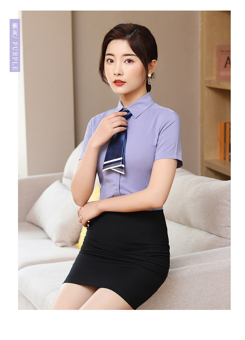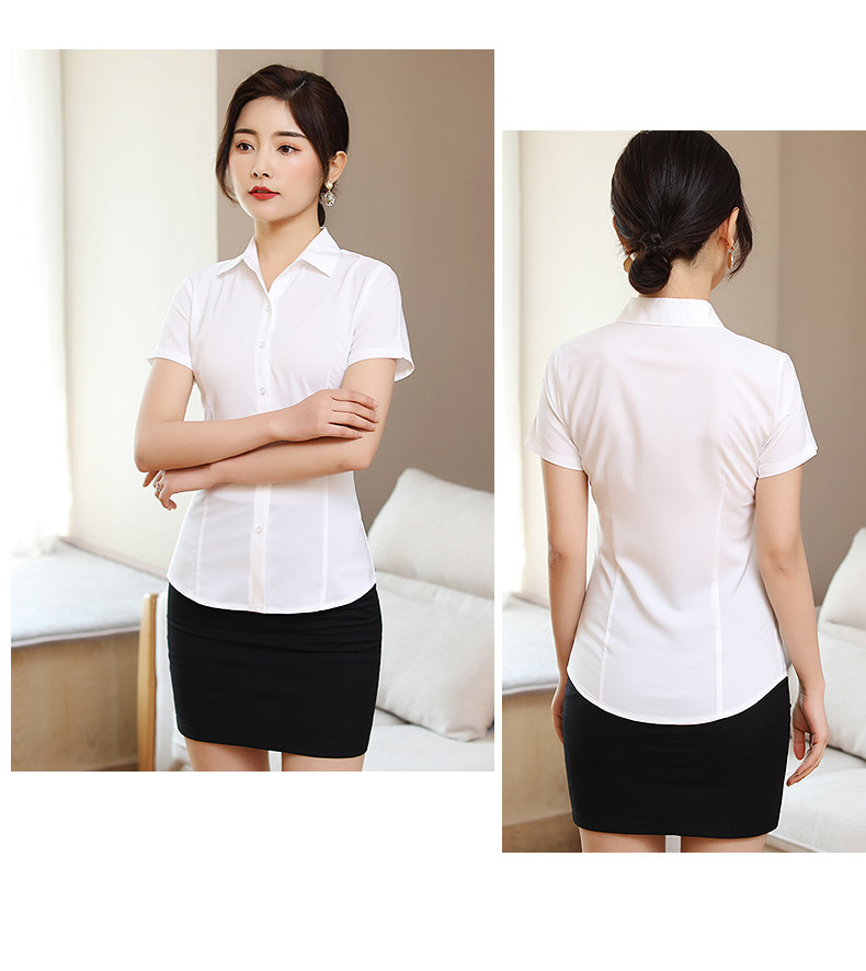 白いシャツ女性半袖作業服正装2023夏の新型韓国版修身寸シャツ女性職業シャツ