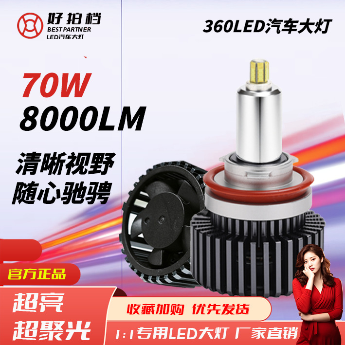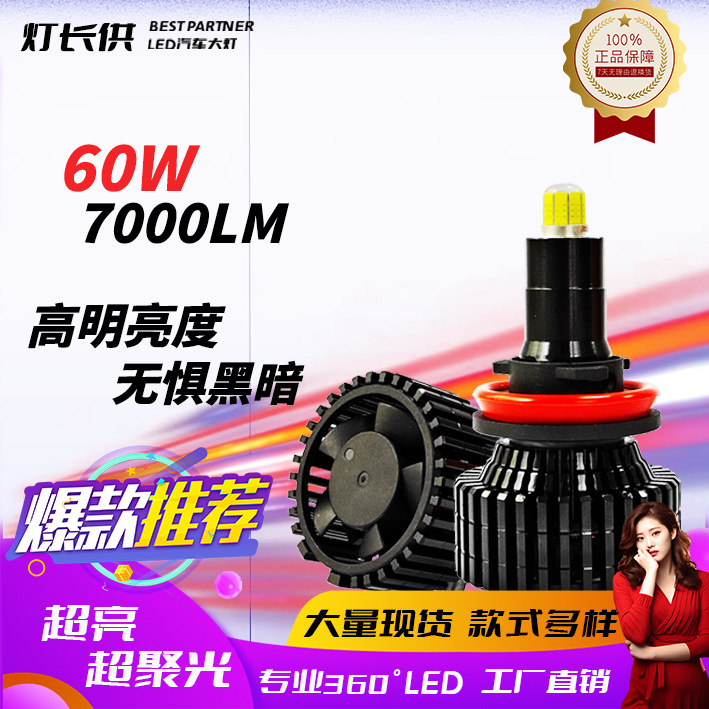 汽车LED大灯360度8面发光H7灯泡改装6000K超亮聚光55Wled车灯无极