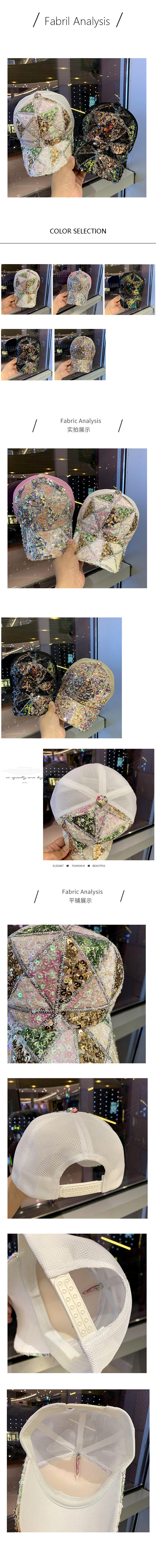 香港の帽子の女性の韓国版の潮の刺繍の野球の帽子のスパンコールの2021春夏の新型の日焼け止めのアヒルの舌の帽子の日よけのネットの帽子