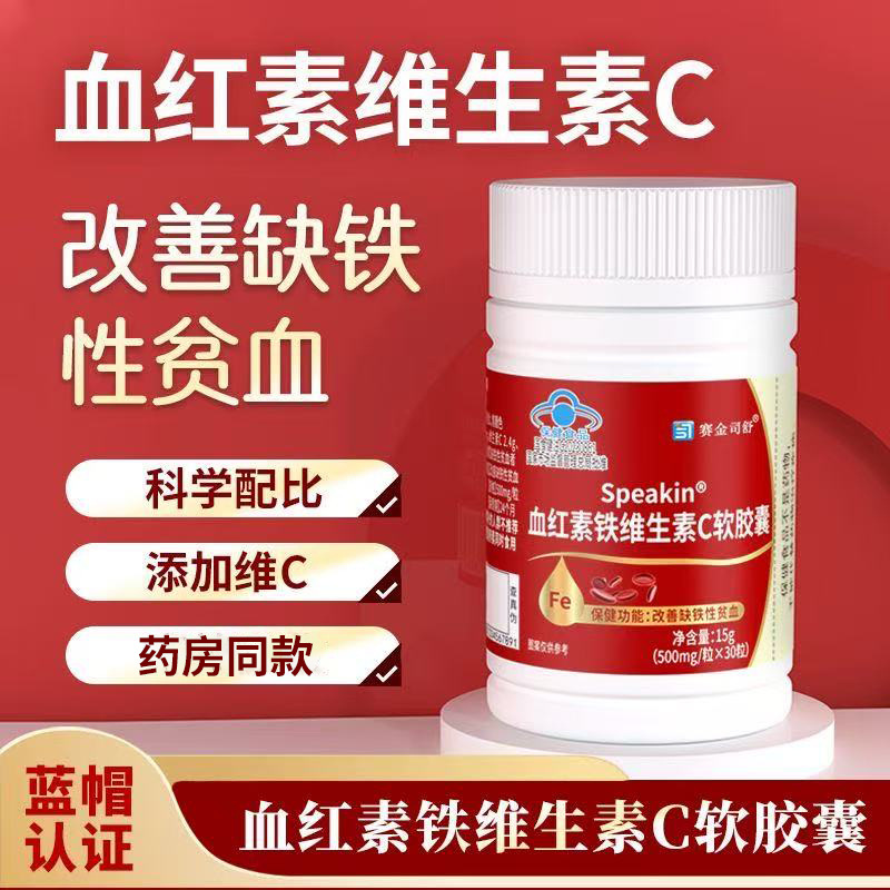 赛金司舒血红素铁维生素C软胶囊30粒改善缺铁性贫/血1件代发批发