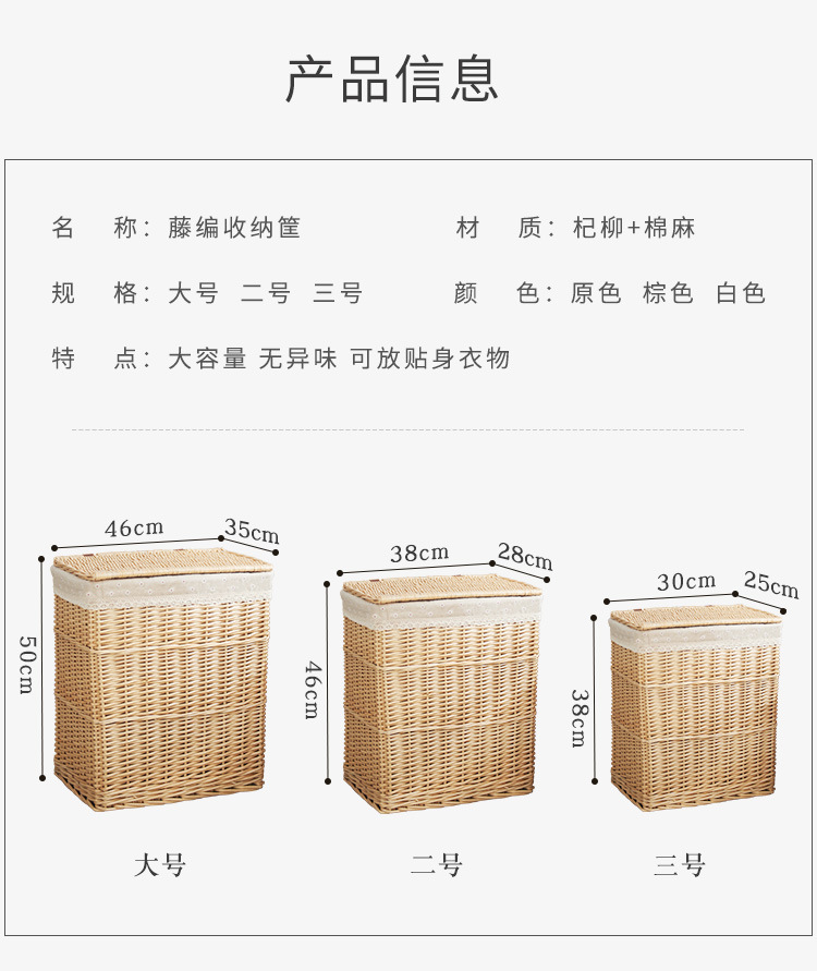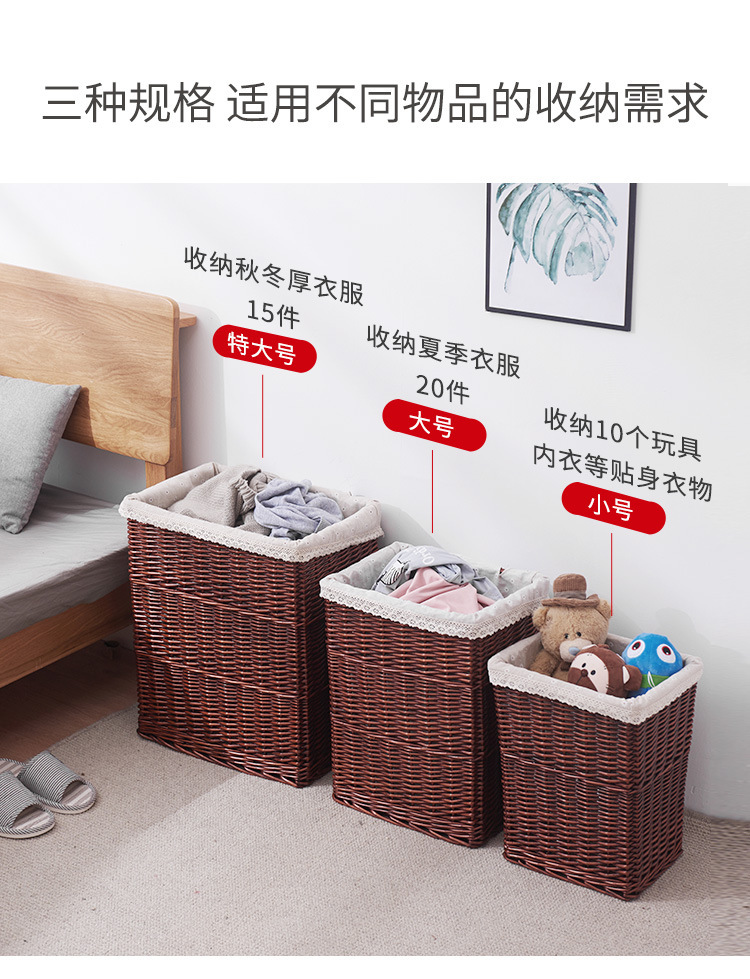 メーカー直販北収納かご柳編布里裏地ホテルの家庭雑物整理大サイズの汚い服かご