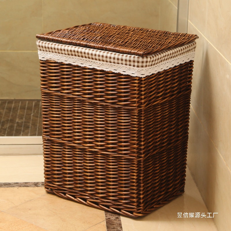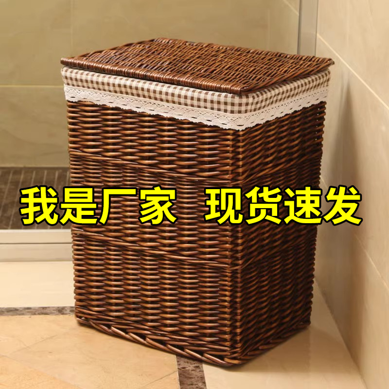 藤编脏衣篮大号带盖脏衣篓火锅店用编织框脏衣服纳筐洗衣卫生间