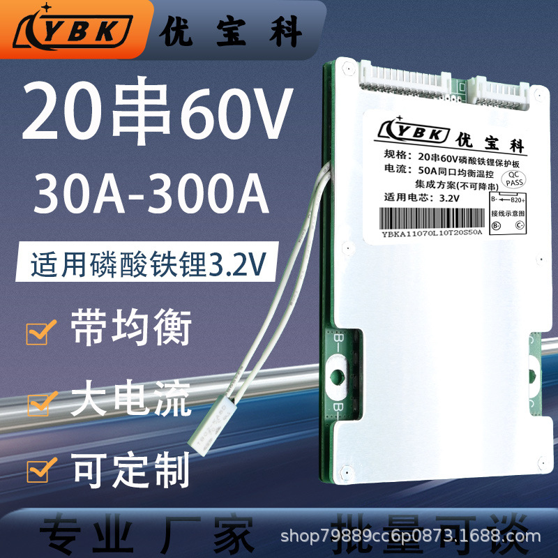 原装60V20串50A磷酸铁锂同口保护板均衡温控适用3.2v磷酸铁锂电池