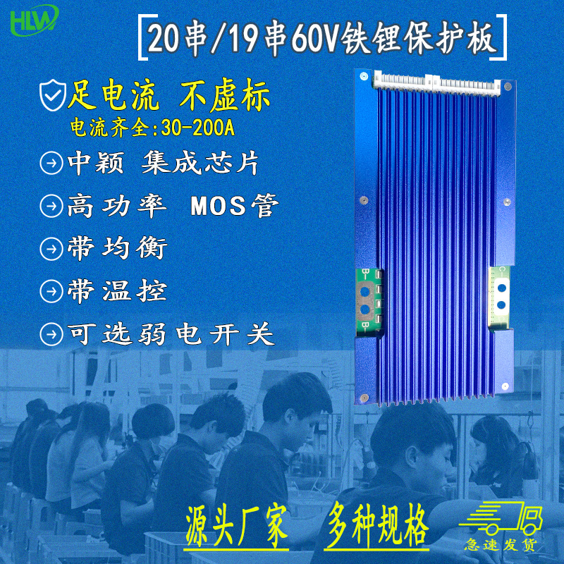 华力威20串铁锂保护板60V磷酸铁锂电池充电73伏均衡铝壳19串铁锂