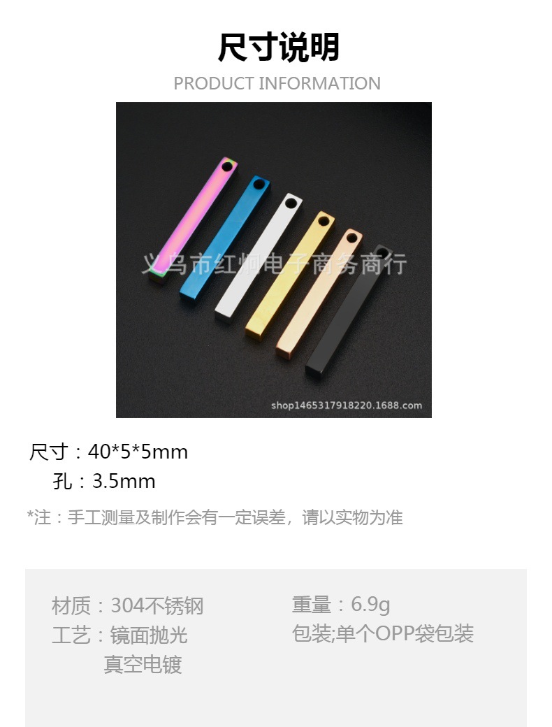 メーカー現物ステンレス立体長方形ペンダント鏡面研磨長尺5*40mm彫刻可能立体棒
