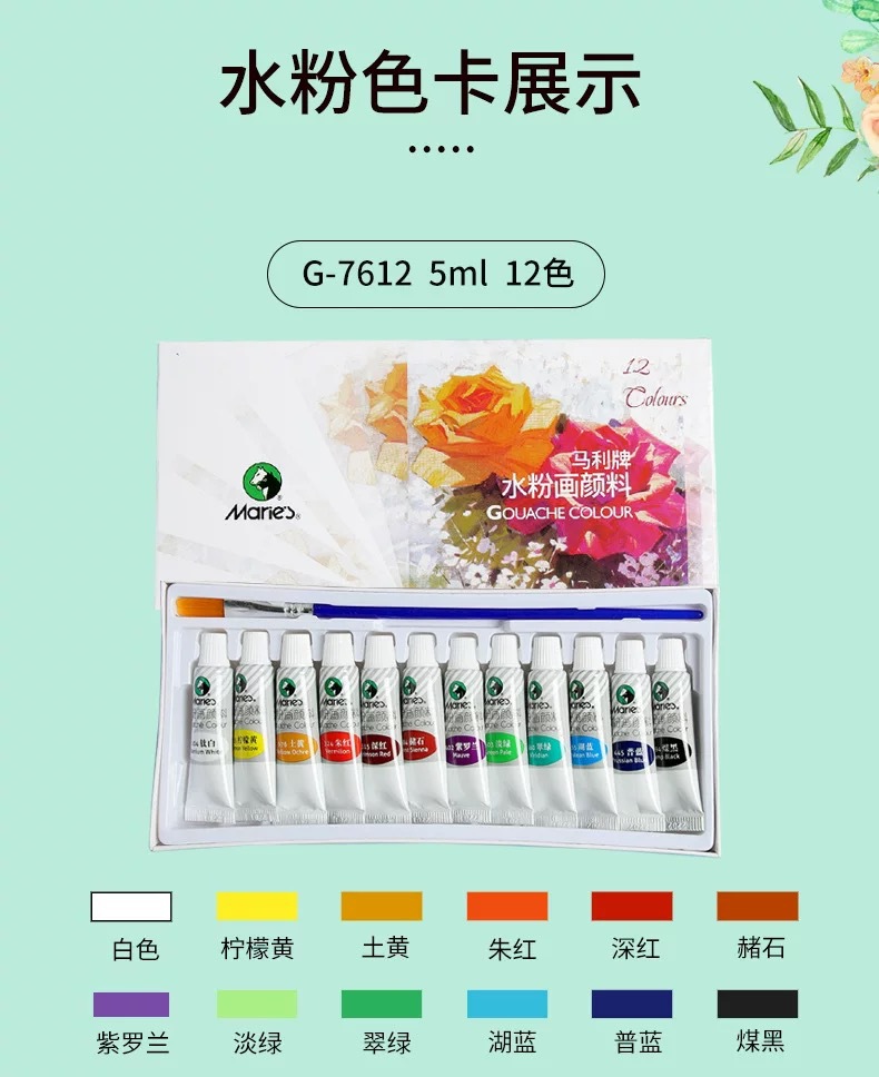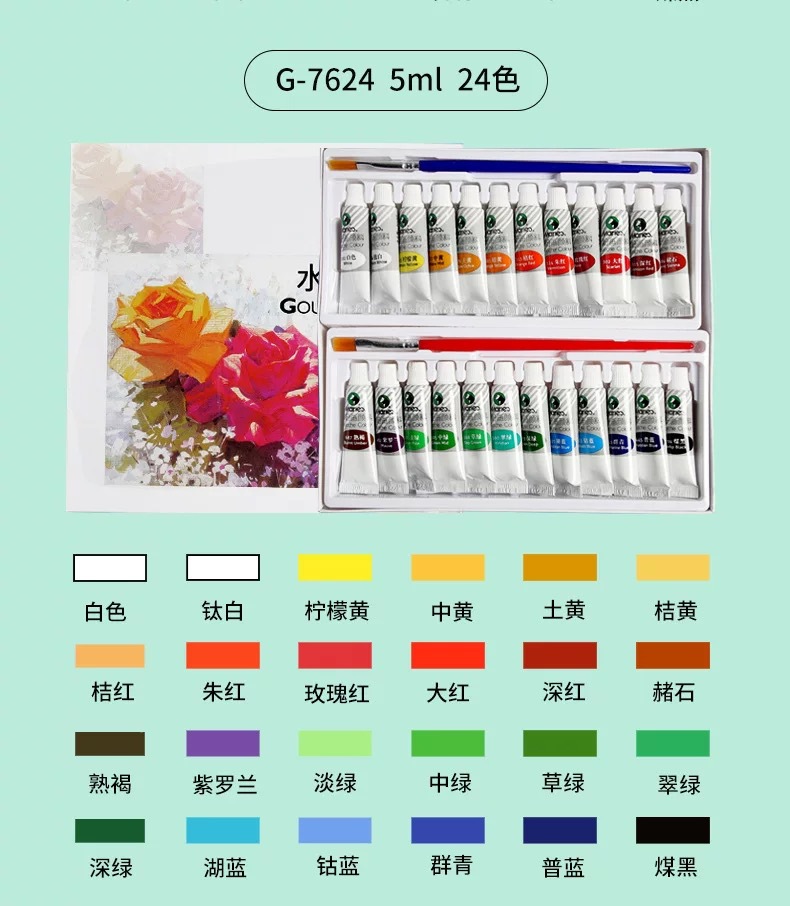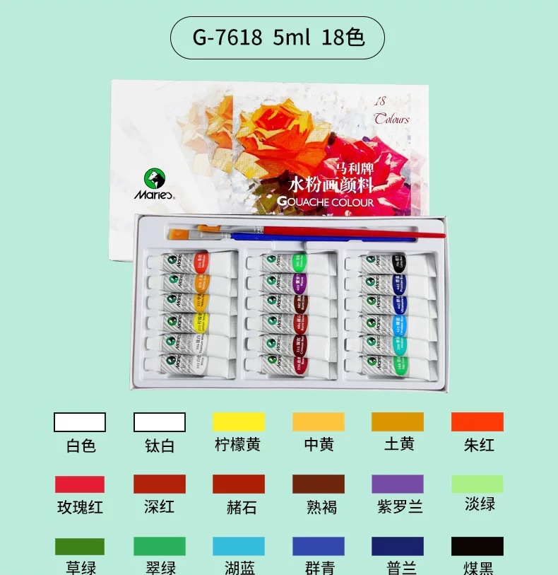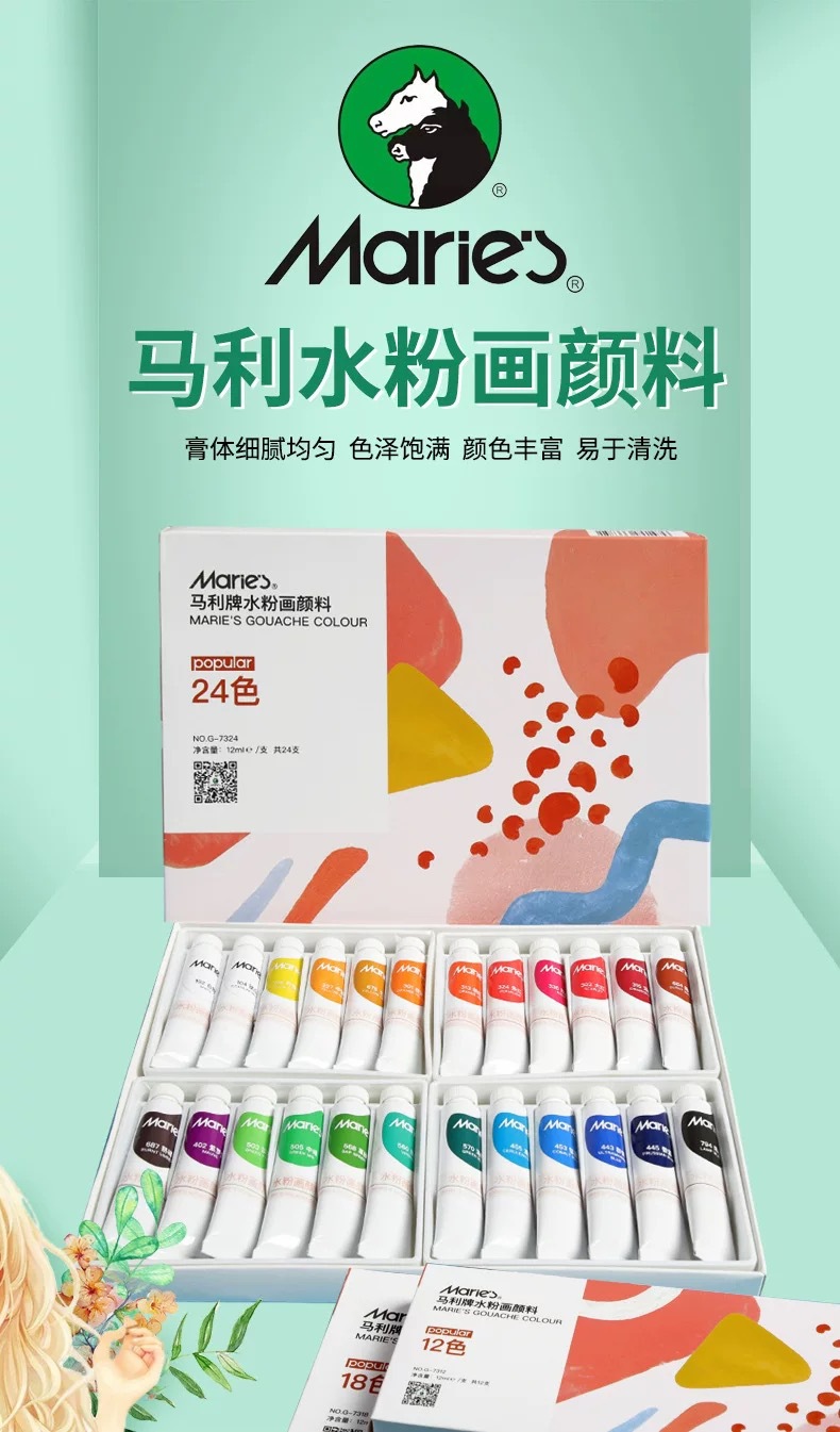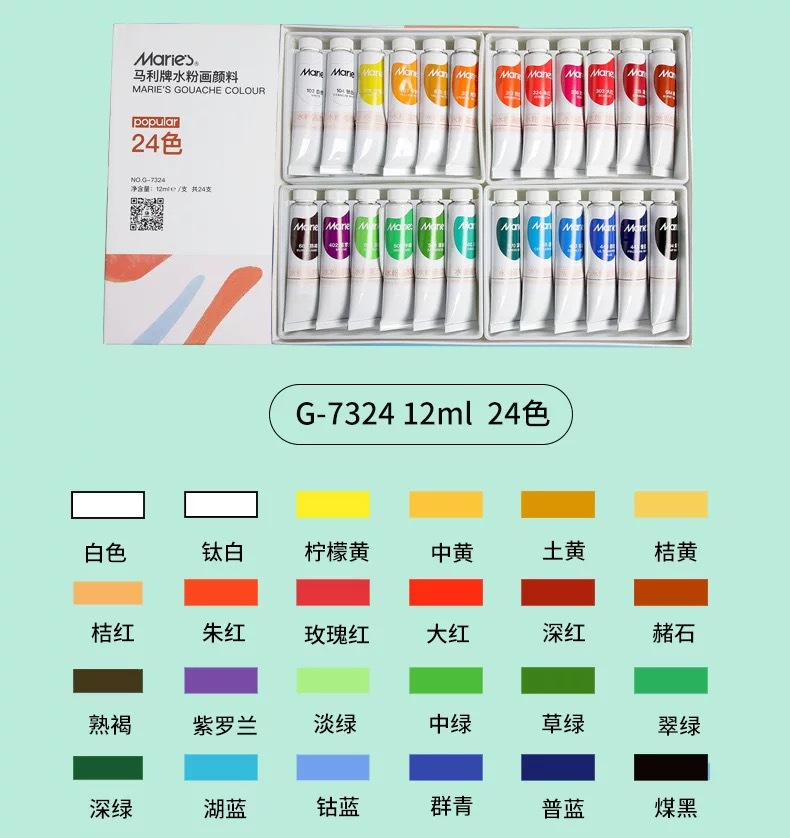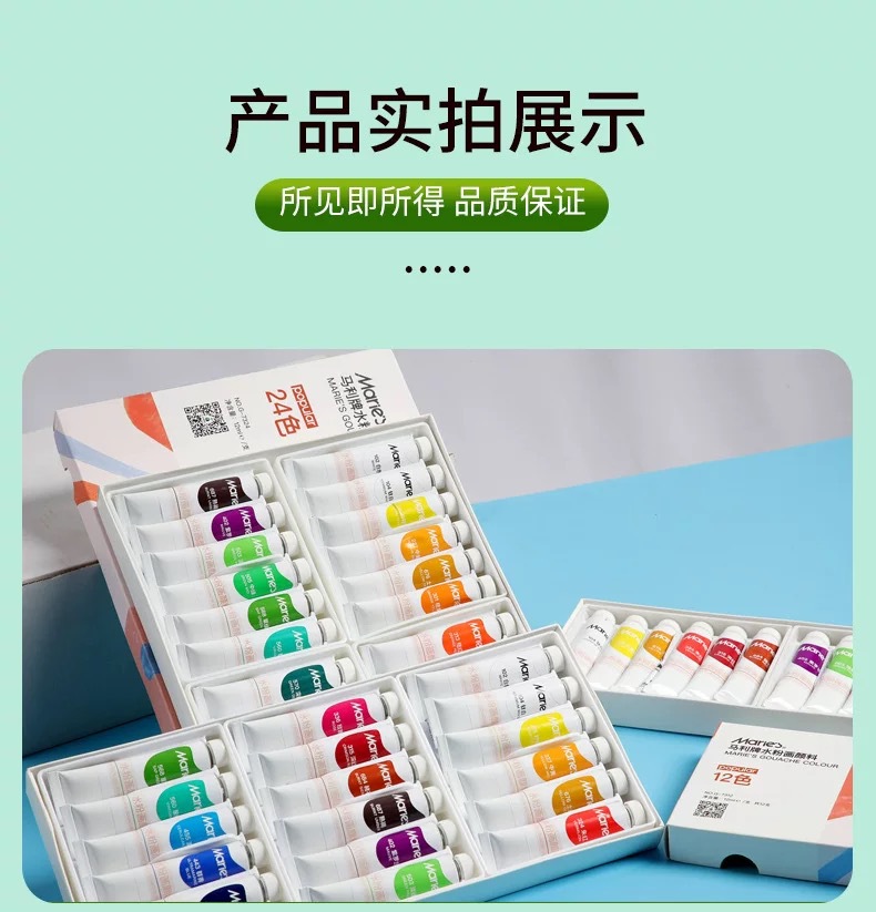 7624馬利牌水粉画顔料内に水チョーク2本24色5ml/本偽造防止コード付き