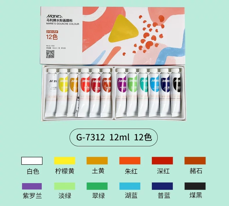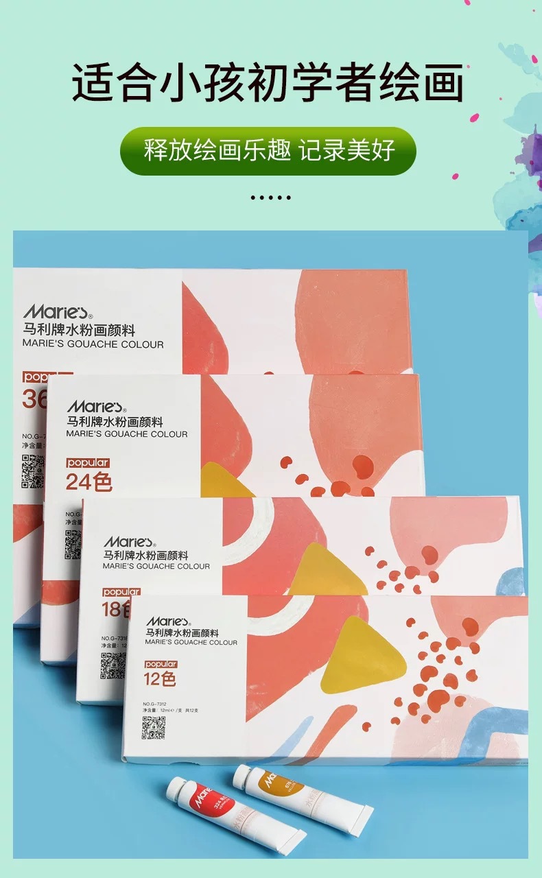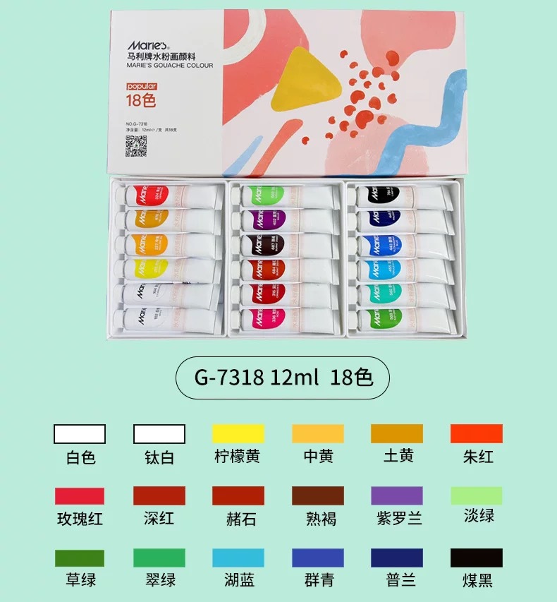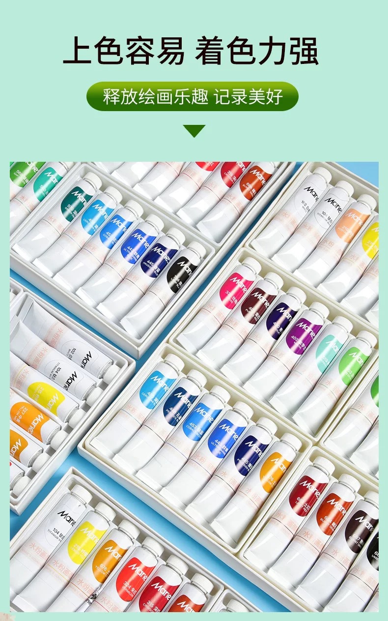 マーリー水彩絵具セット 5ml12ml 箱入り 美術画初心者用絵具 12色18色24色
