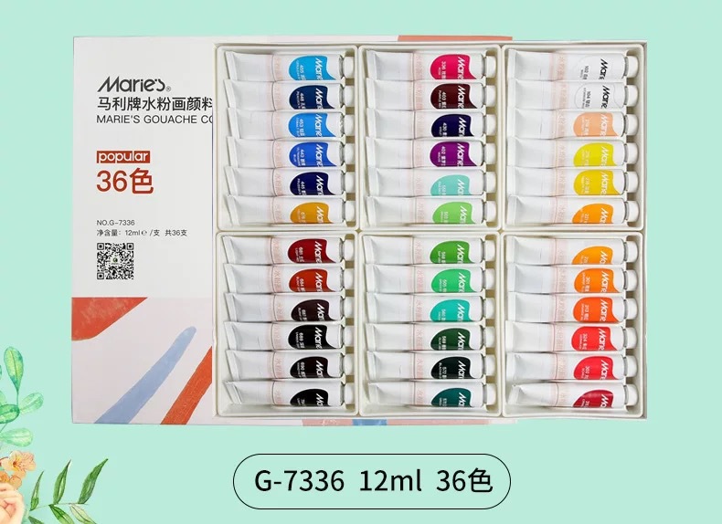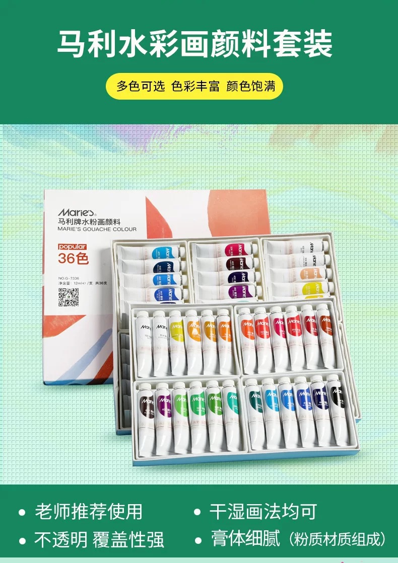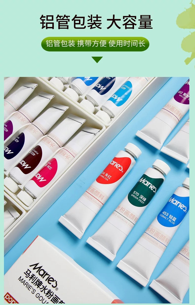 マーリーブランド水パウダー水彩画絵の具セット36色初心者子供用チューブ状24色12ml箱入り馬力
