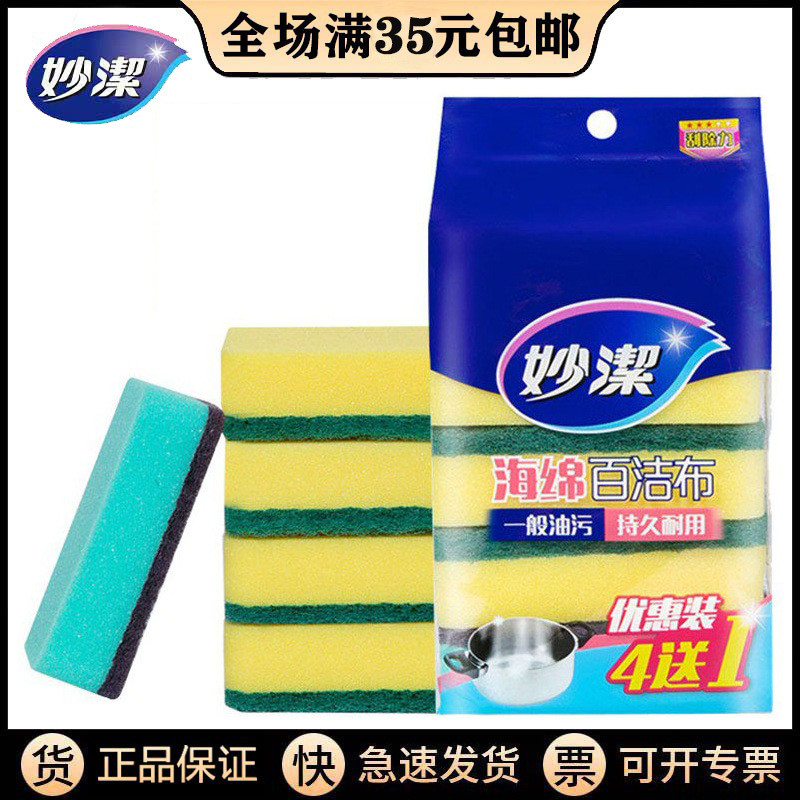 妙潔スポンジ4 + 1百洁布キッチンブラシ鍋皿洗いスポンジブラシは、耐久性のある特恵服を拭きます