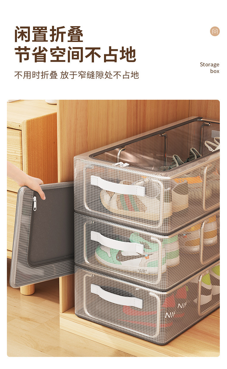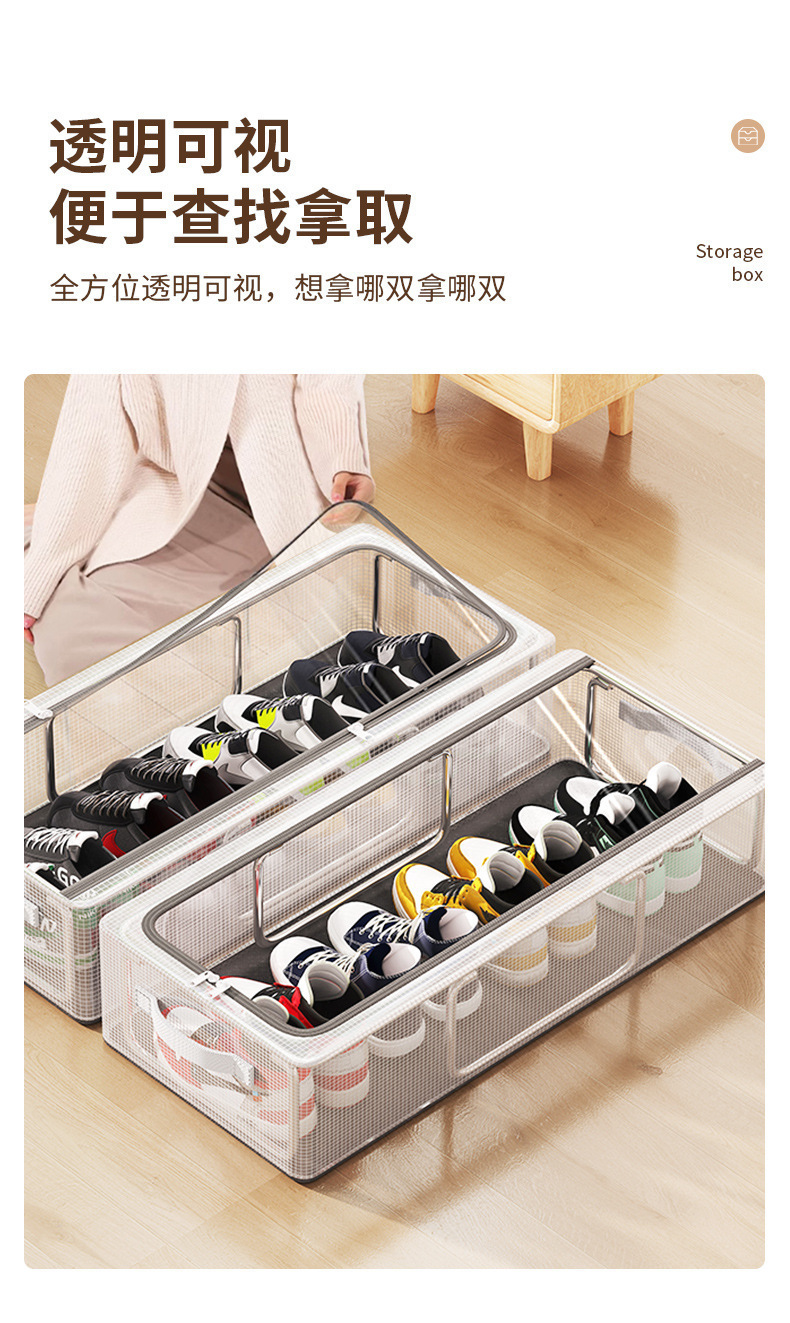 靴収納ボックス家庭用無取付透明靴靴収納ボックススチールフレーム折りたたみ可能ベッド底収納防塵靴ボックス