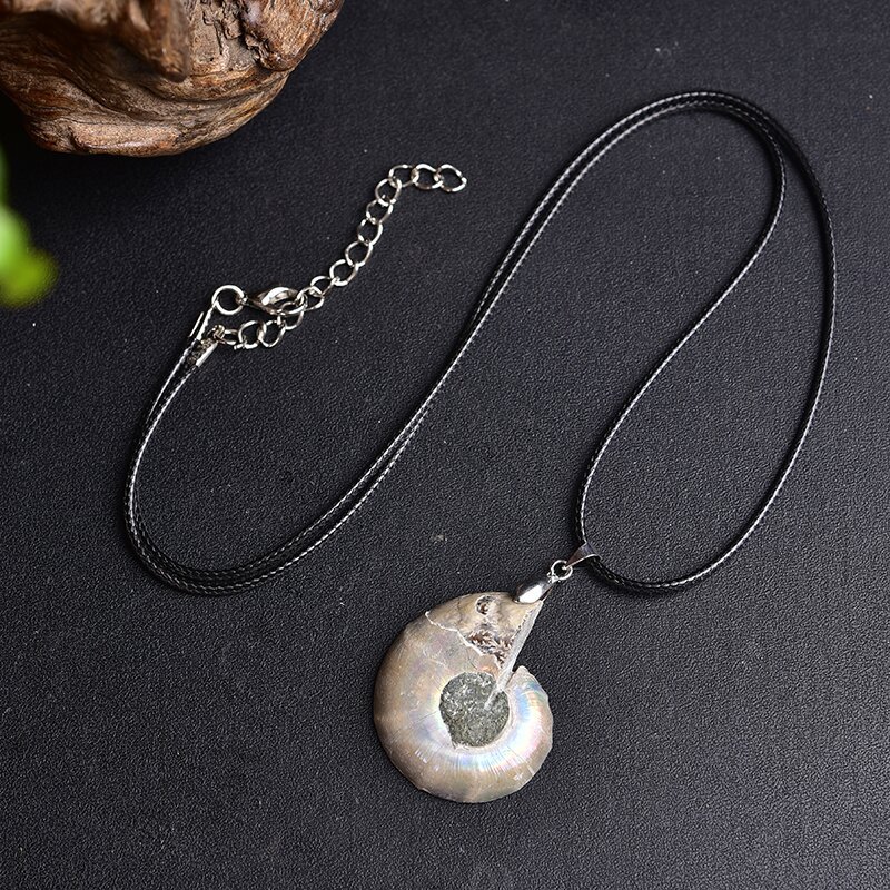天然サザエ化石ペンダントネックレス原石原鉱鉱物標本男女アクセサリー斑色サザエ菊石スライス