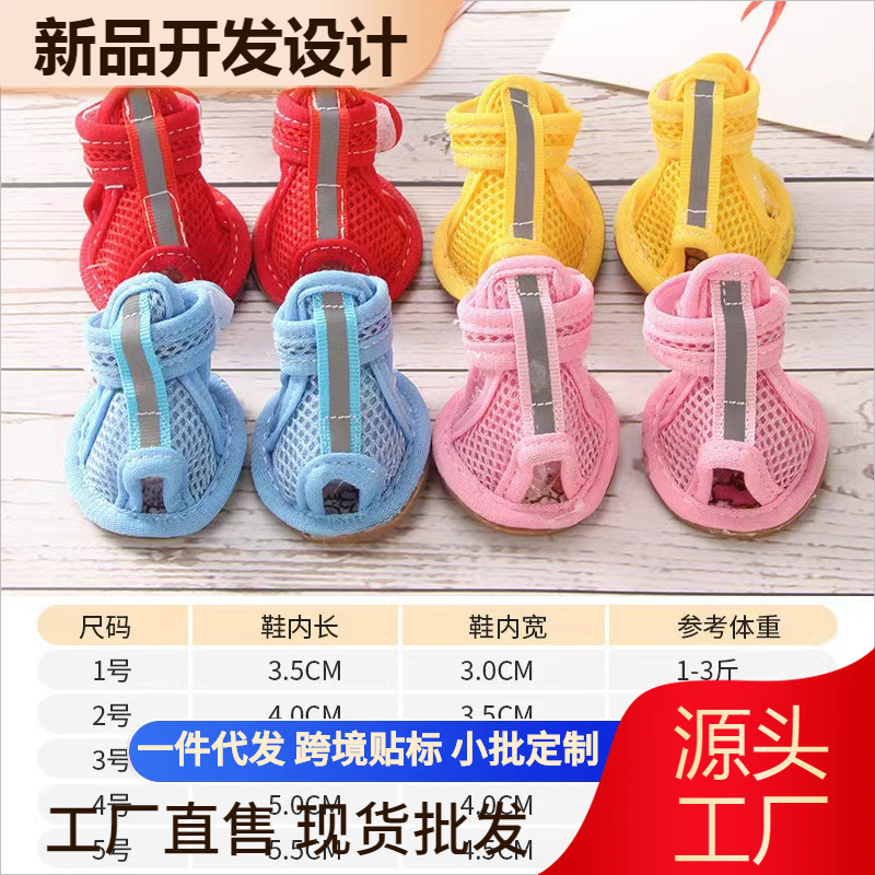 犬の夏の靴はテディ博美比熊小型犬ペットの通気性が薄い柔らかい底の犬のサンダルに出かけます。