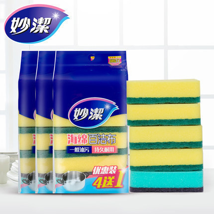 妙潔スポンジ4 + 1百洁布キッチンブラシ鍋皿洗いスポンジブラシは、耐久性のある特恵服を拭きます