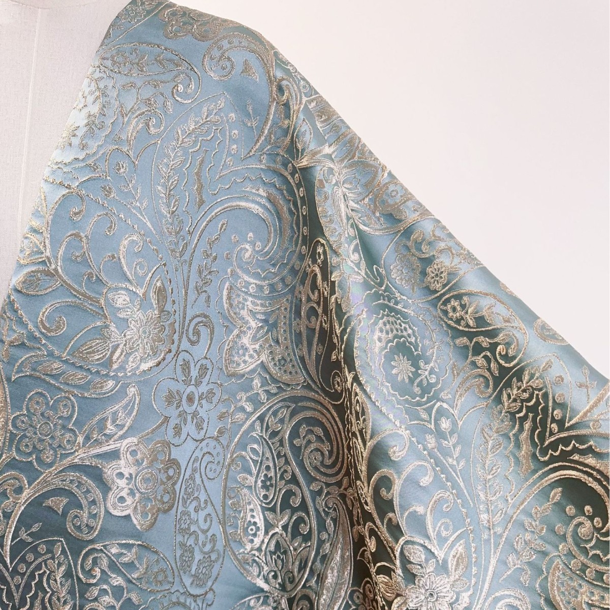 メーカー織錦織金銀糸ビワ花中国風生地古着生地