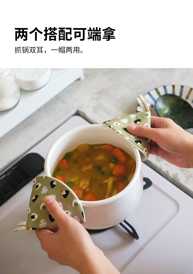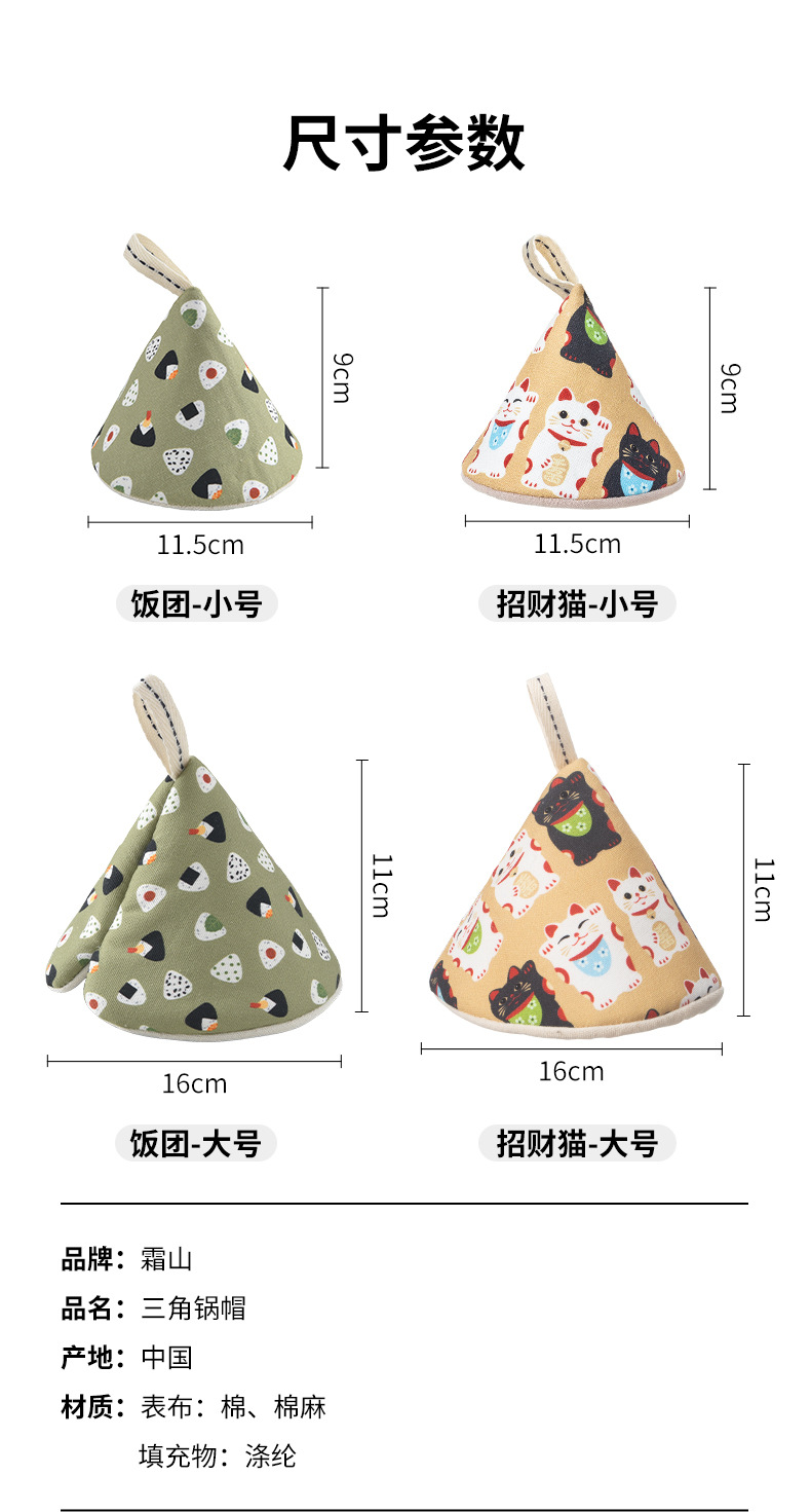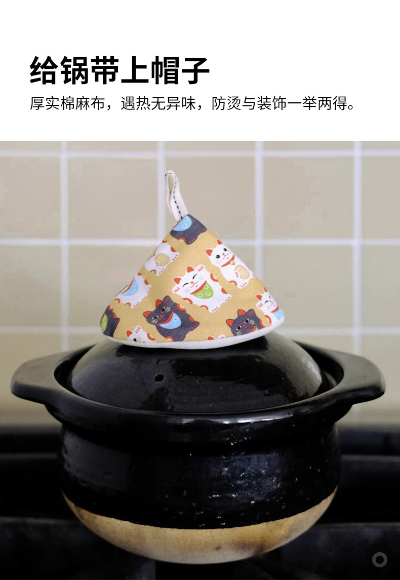 霜山日本式布芸パーマ防止鍋帽キッチン三角鍋つかみ鍋取っ手クリップ吊り下げ可能鍋耳断熱グローブクリップ