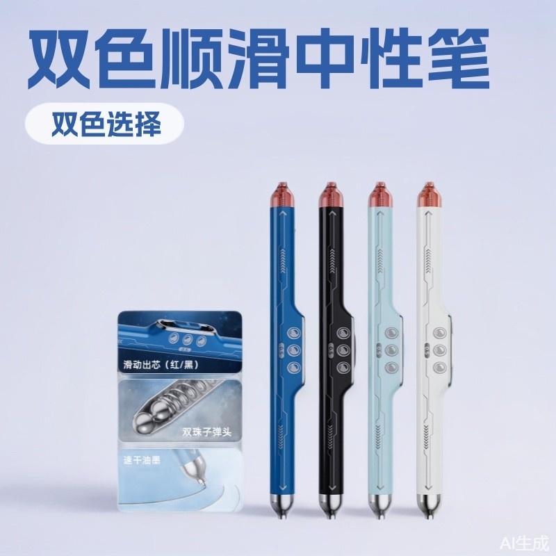 幻影潜艇按动中性笔顺滑双头双色黑色红色签字笔做笔记标记圆珠笔