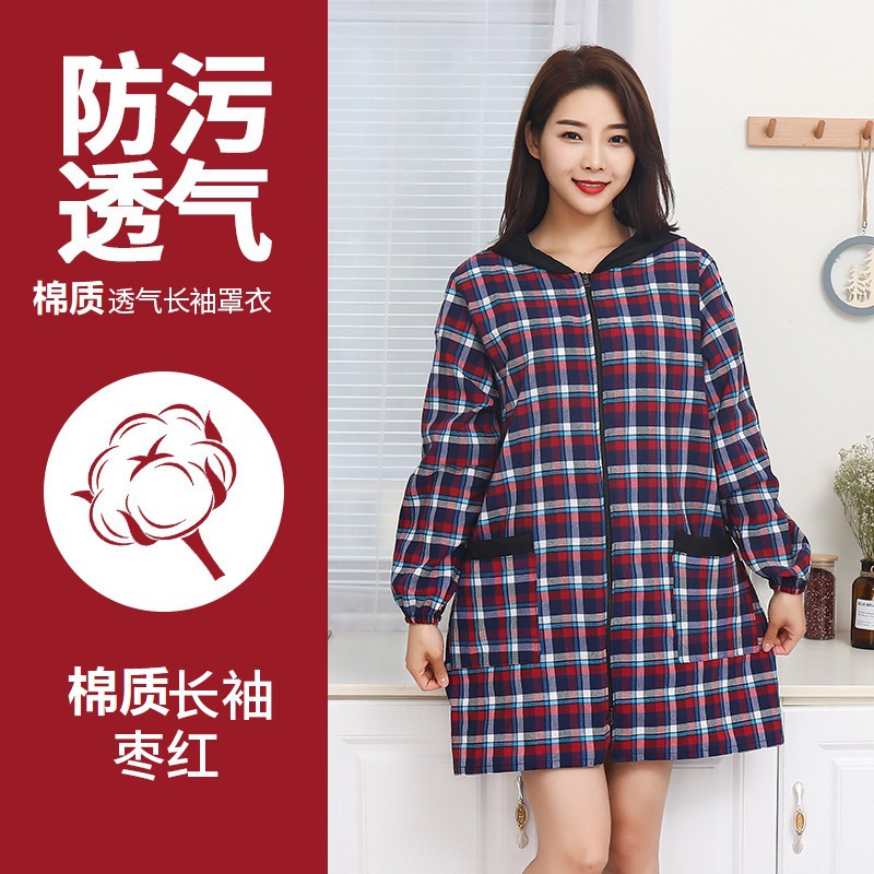 厚手の女性用防護服、冬用長袖、家事用エプロン、キッチン用、家庭用防汚、レストラン作業服