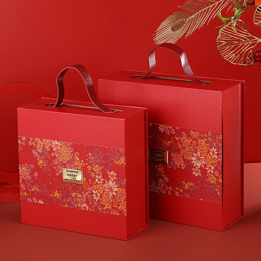 中国式新型ジョー移転ギフトボックス箔押し書体プリントギフトボックス磁気吸引カバー手提げ喜糖箱メーカー卸売り