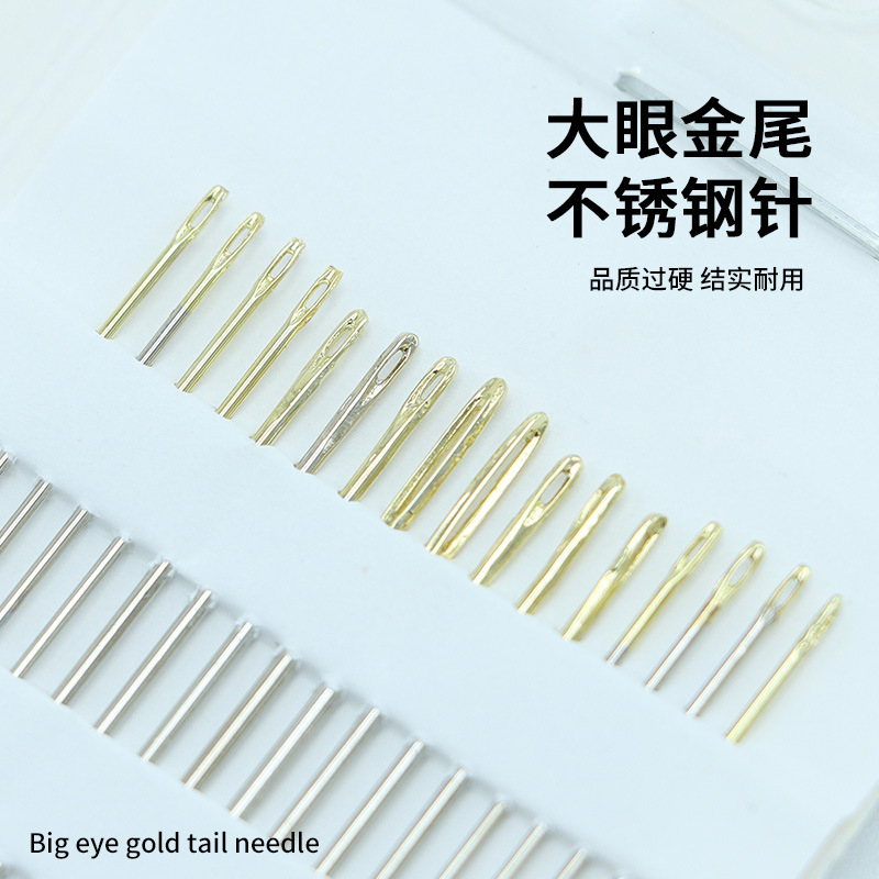 16枚3/9多目的金尾手缝い针シルバーテール刺繍针イエロープレート针ビッグアイ手缝い针ゴールドラメテール手缝い针
