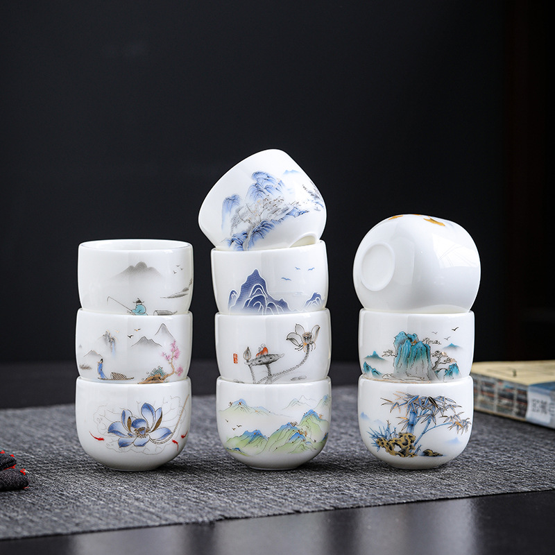 カンフーティーセット、家庭用品、ティーカップ、白磁ティーカップ、セラミック羊脂翡翠マスターカップ、ティーボウルセット、ギフト