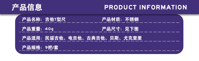 ギターT型定規 ネック指板フレット弦高調整測定器 9点セット 調整用測定器 卸売