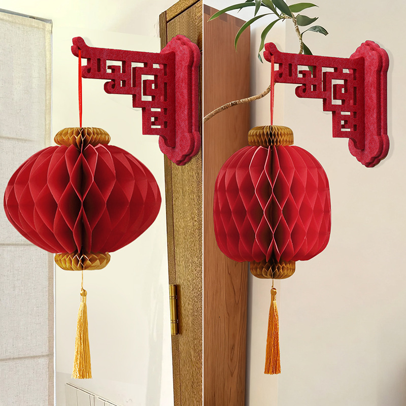 新年、春節、旧正月の紙提灯飾り、馬年壁掛け、ドア飾り、蜂の巣提灯、ひょうたん、春の文字、鈴