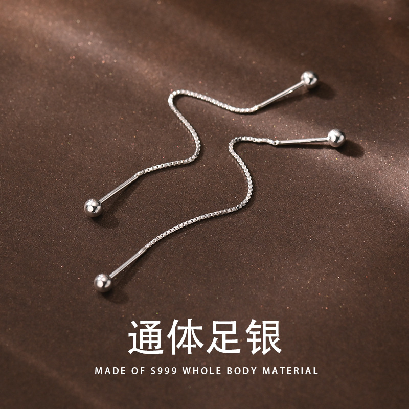 S999純銀ロングイヤリング レディース イヤリング チェーン 耳飾り 軽い高級感 細見え効果 エレガントなイヤリング