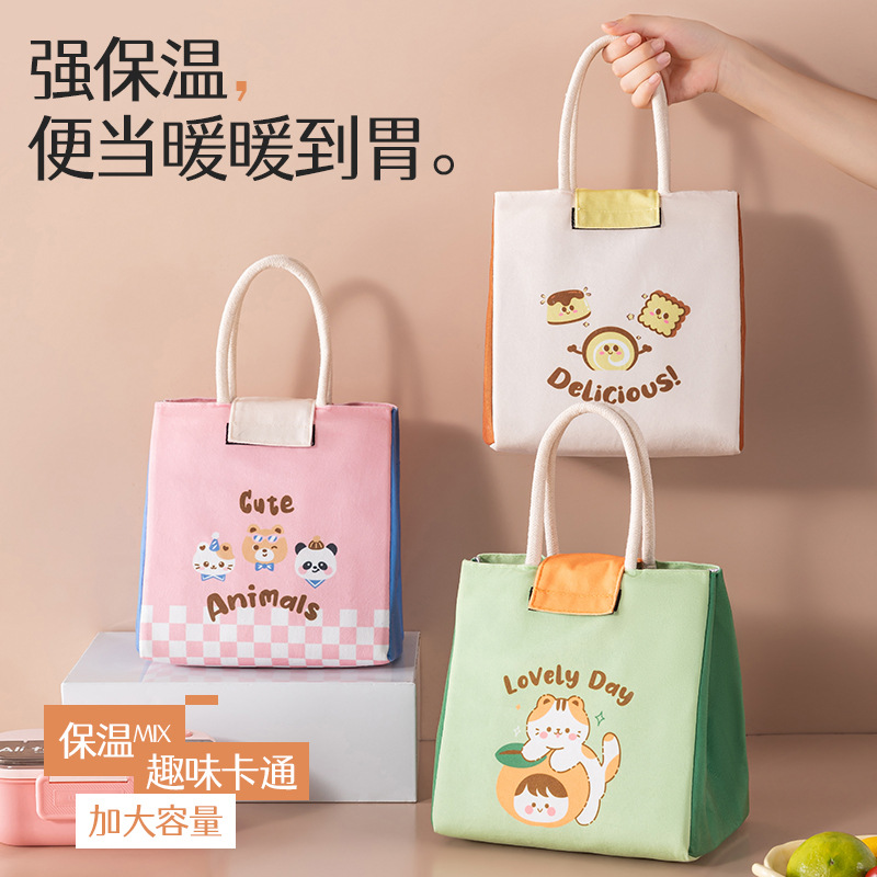保温袋弁当箱手提げ袋弁当袋キャンバスバッグサラリーマン学生はご飯とアルミ箔の弁当箱を持っています。