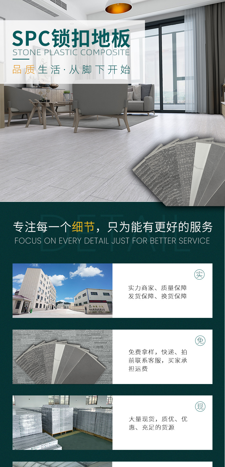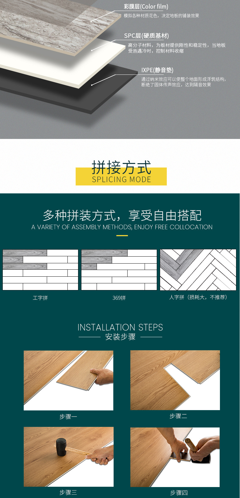 源工場PVCロック床プラスチック耐摩耗防火防水無ゴムバックル木目spc石晶床