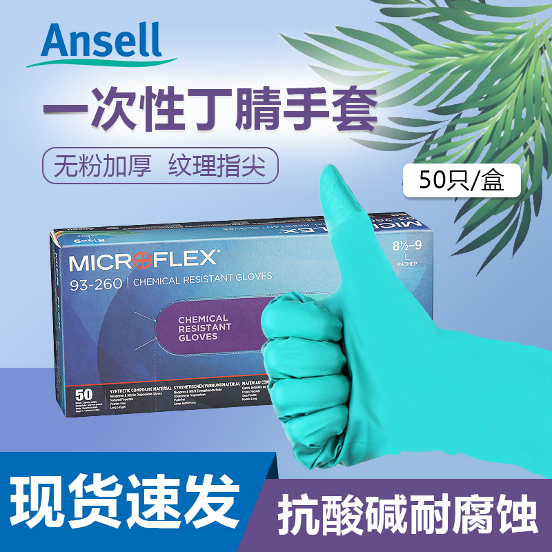 Ansell安思爾93-260使い捨てニトリル手袋化学実験室無粉延長型手袋