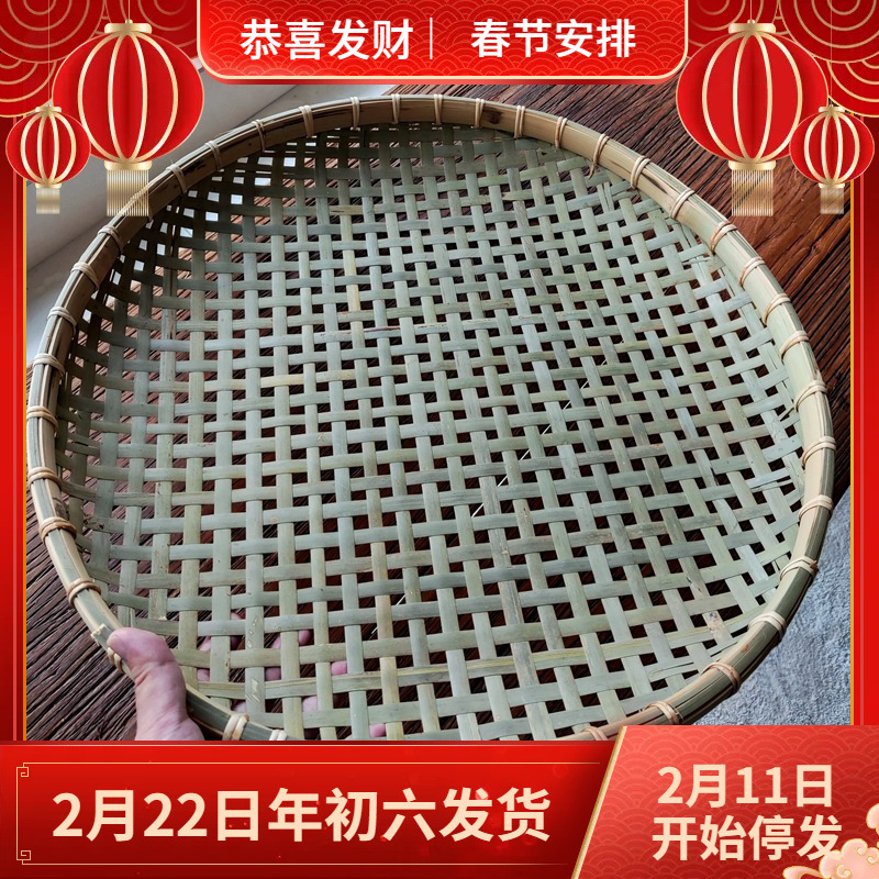 白藤鎖辺頭層竹皮箕竹編み干し神器円形平底竹かご手編み竹石版竹製品