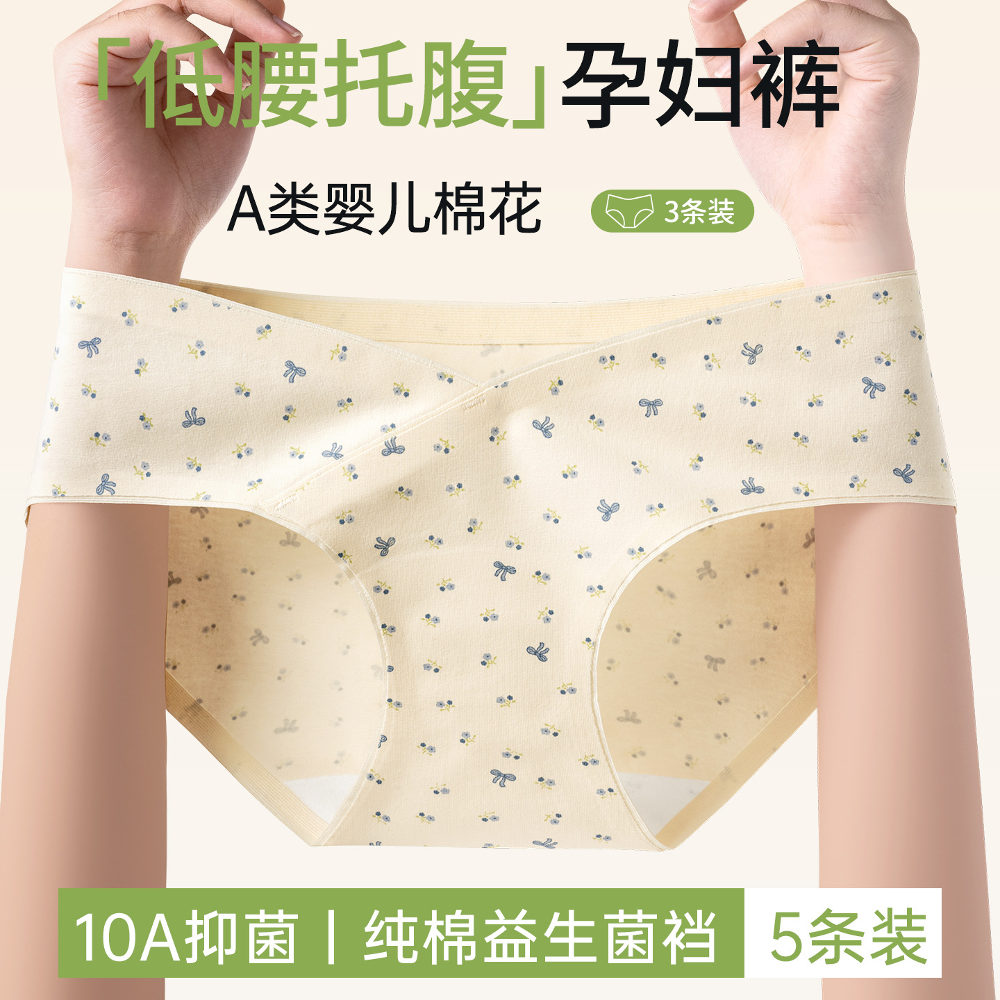 A类纯棉10A无痕碎花孕妇内裤女怀孕早中晚期专用低腰托腹孕妇内裤
