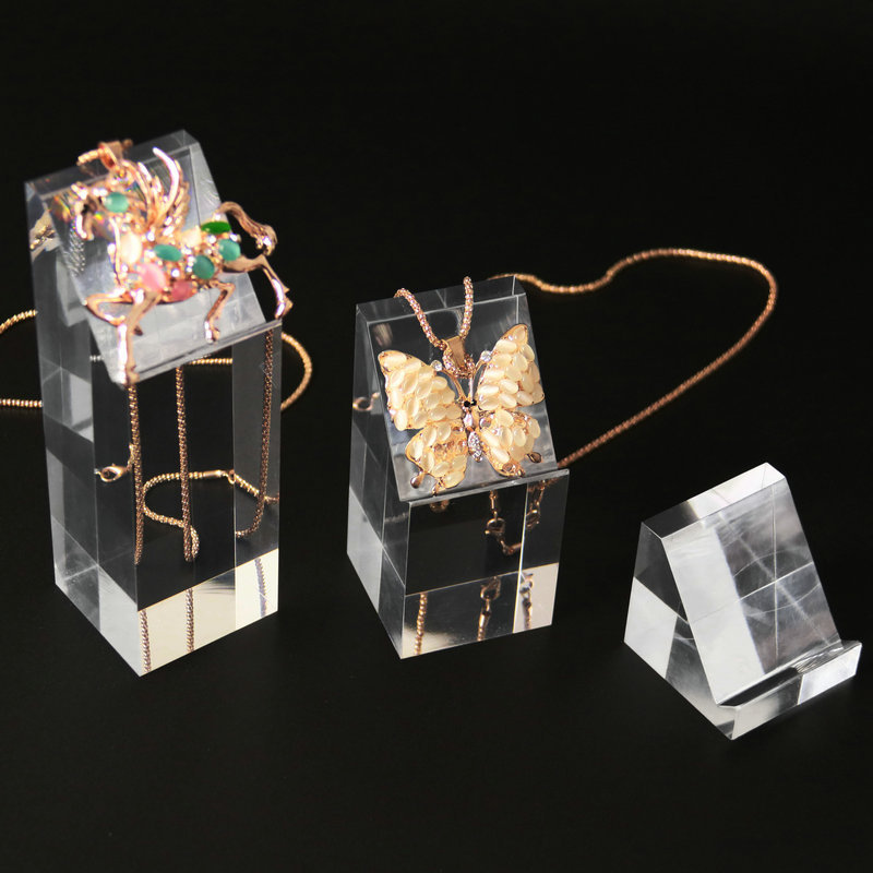 アクリル製四角柱展示台、滑り止め付き斜面、透明な装飾品展示台