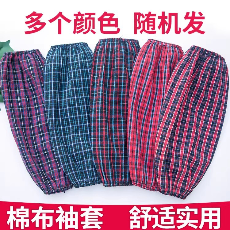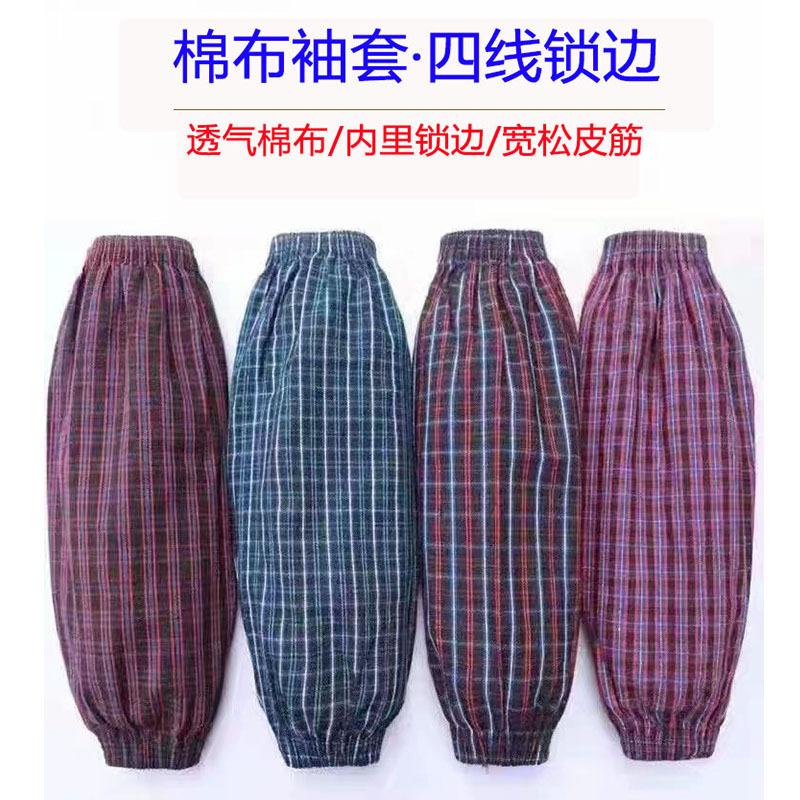 批发纯棉袖套粗棉布花格子家务工作防污耐磨劳保套袖成人男女护袖