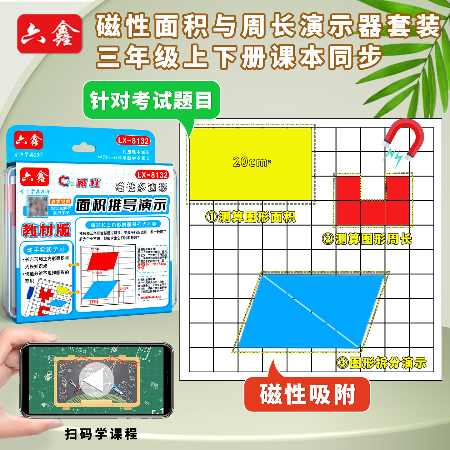 磁気多角形面積導出デモ器小学校数学三年生面積と周長学習セット教具