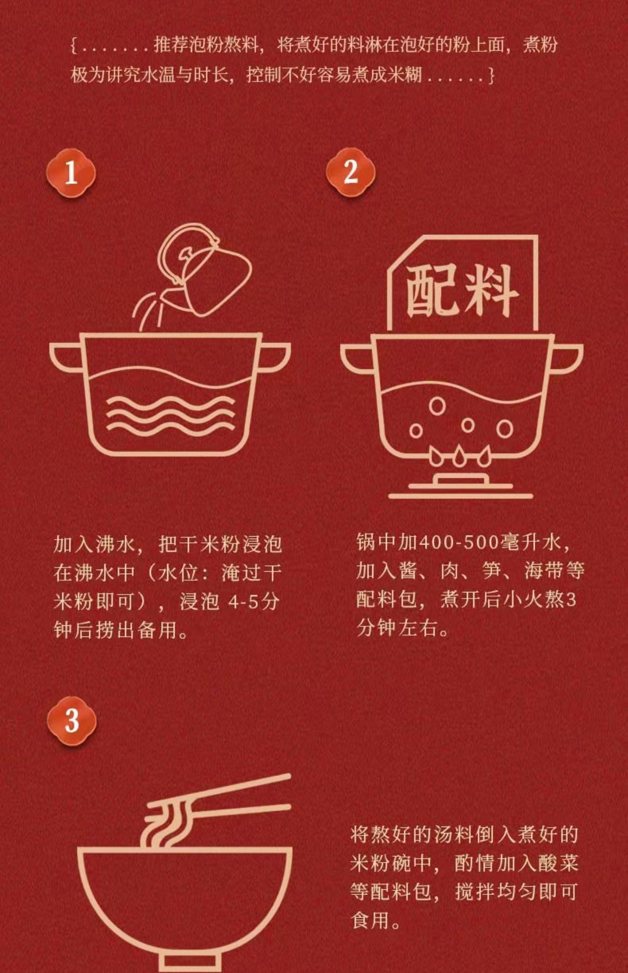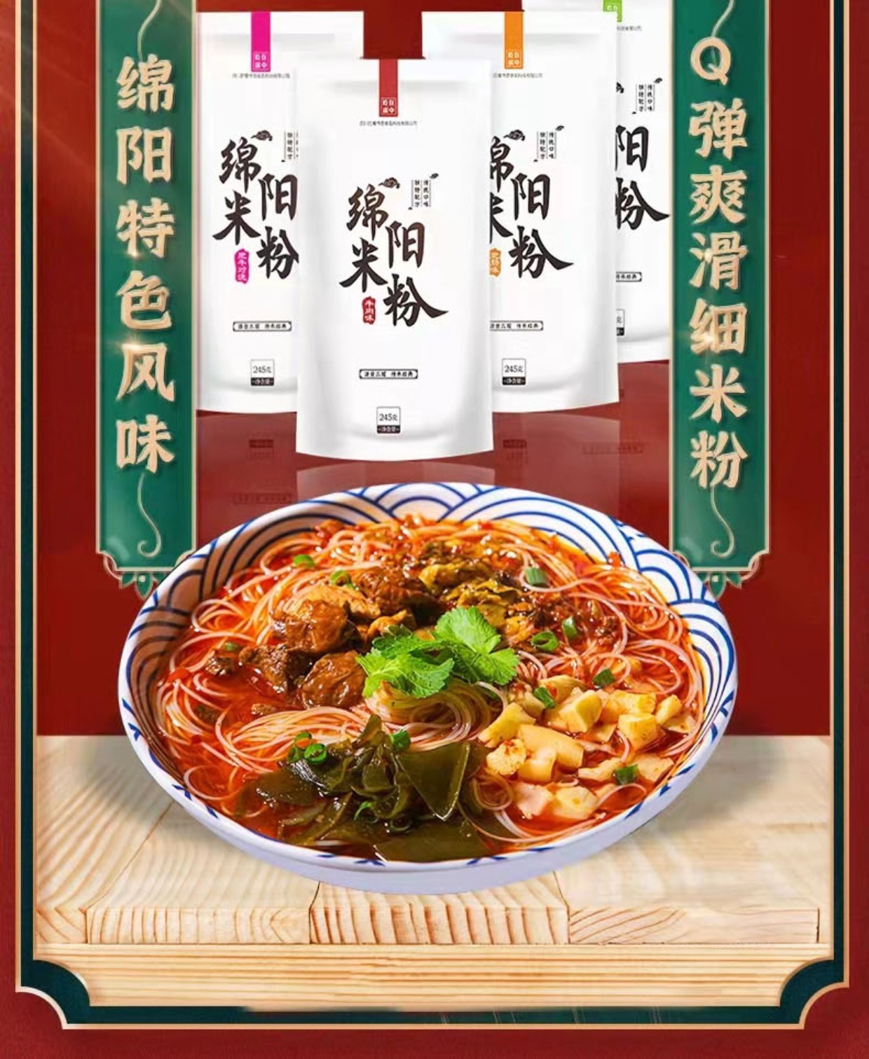 パッケージ仕様 牛肉味の素米粉220g/袋 (肉なし),牛肉米粉245g/袋,鶏肉米粉245g/袋,ピクルスペッパーポーク風味ビーフン 245g/袋,肥腸米粉245g/袋,牛肥対米粉245g/袋,新疆米粉炒め (乾燥粉)