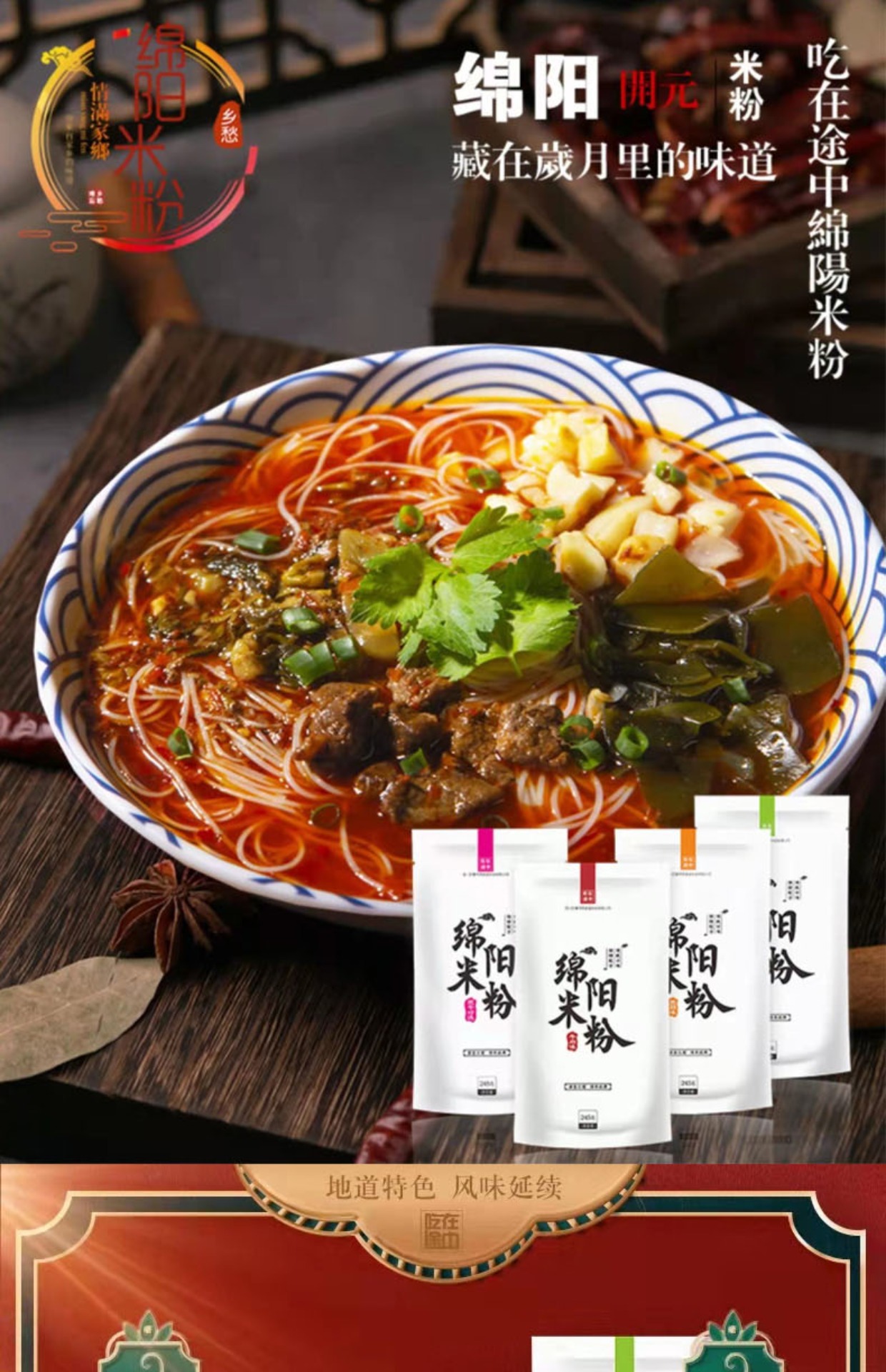 四川名物綿陽米粉、南充米麺、牛肉鶏汁肥腸、箱入り、インスタント、桶入り、即食、卸売、調理不要