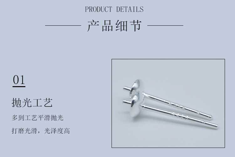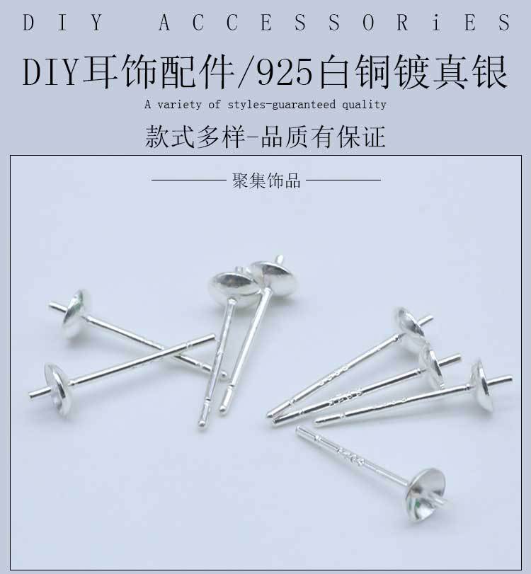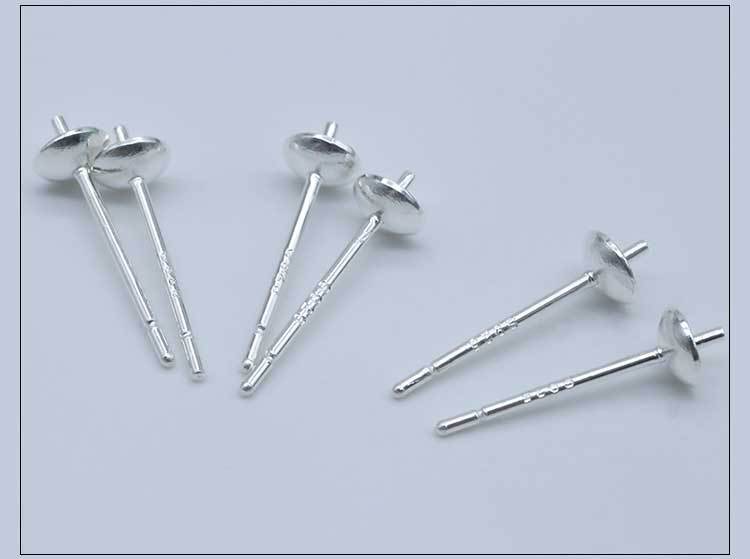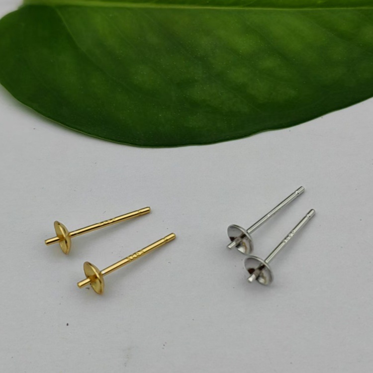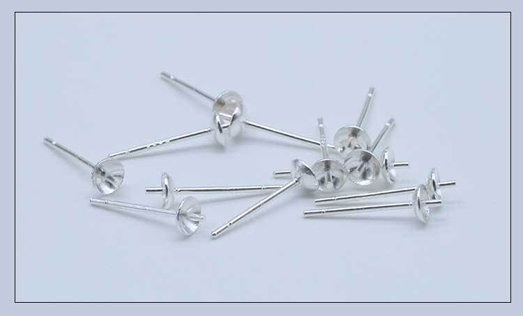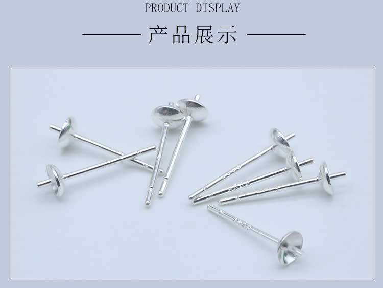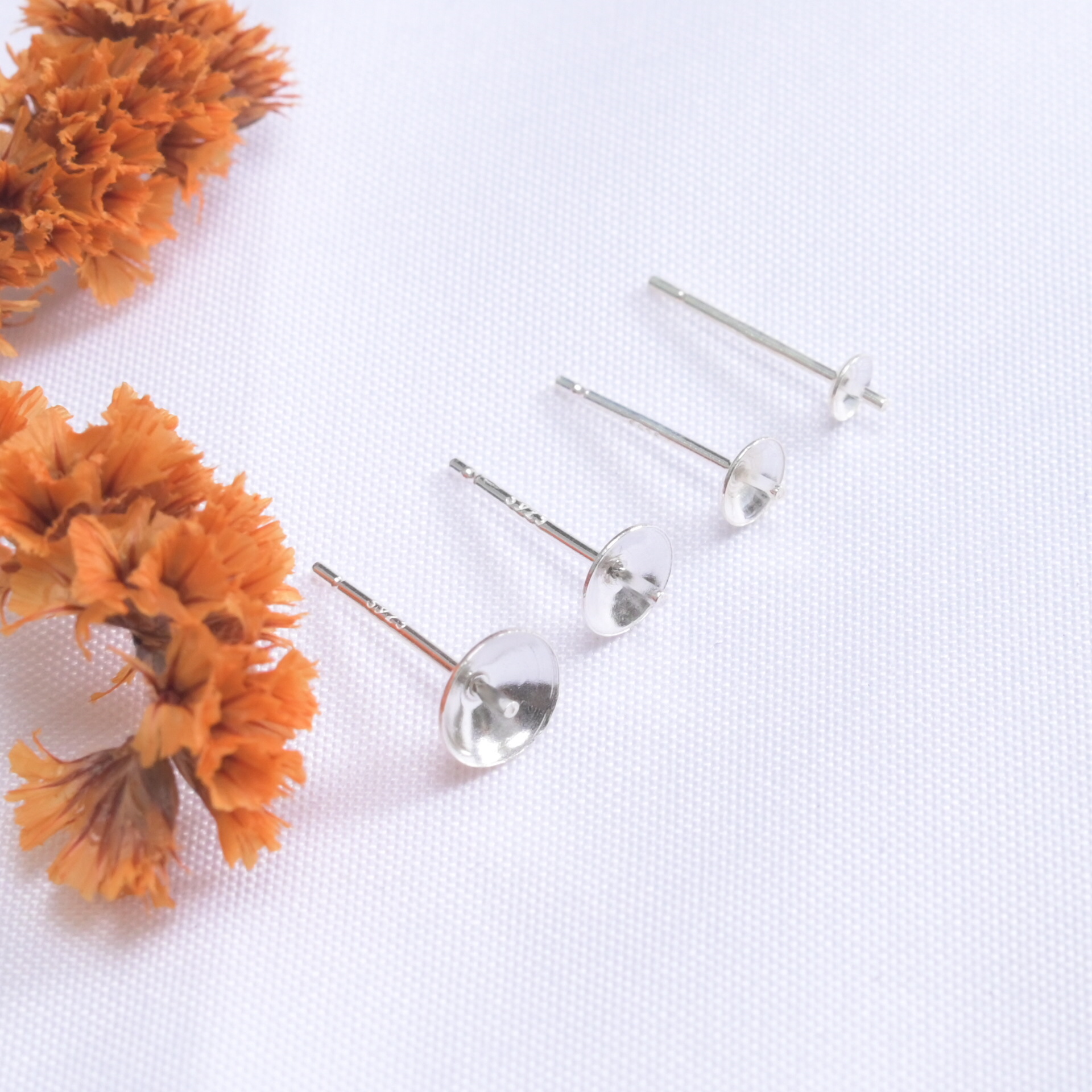 S925純銀針十字碗針ピアス半真珠耳針耳托針半製品耳飾り部品碗針卸売り