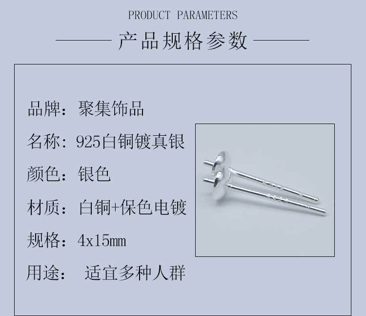 925字印手作りdiyアクセサリーアクセサリー純銅保色メッキ真珠平托廃棄防止材料平耳針