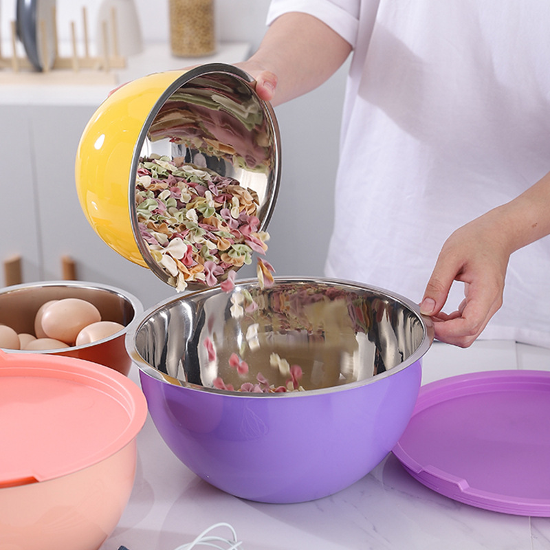北欧鮮度保持ボウルセット カバー付きサラダボウル 卵洗いボウル 家庭用キッチン シンプルな丸いステンレスボウルと洗面器