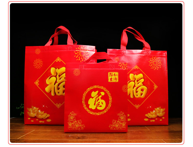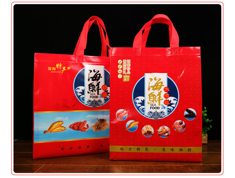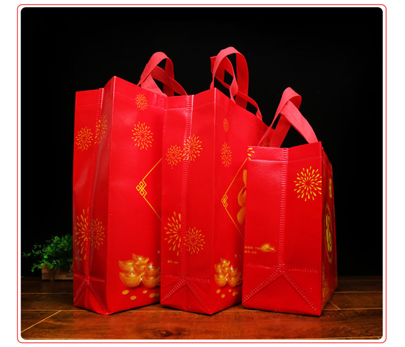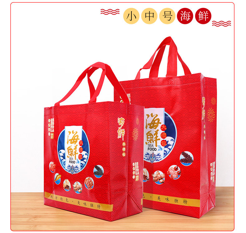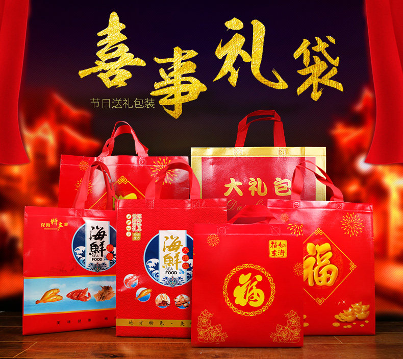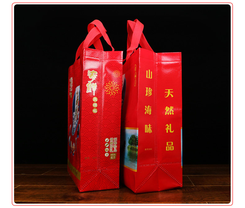 ギフトバッグ、ポータブル不織布福袋、赤いシーフード新年ギフトバッグ、フィッシュボール、タバコ、ワイン、お祝いバッグ、密封