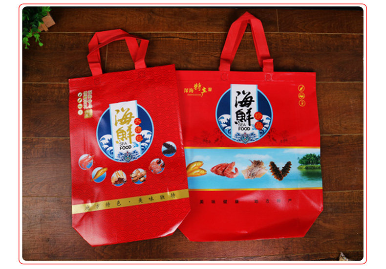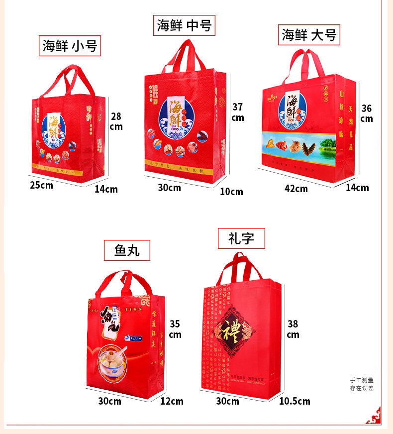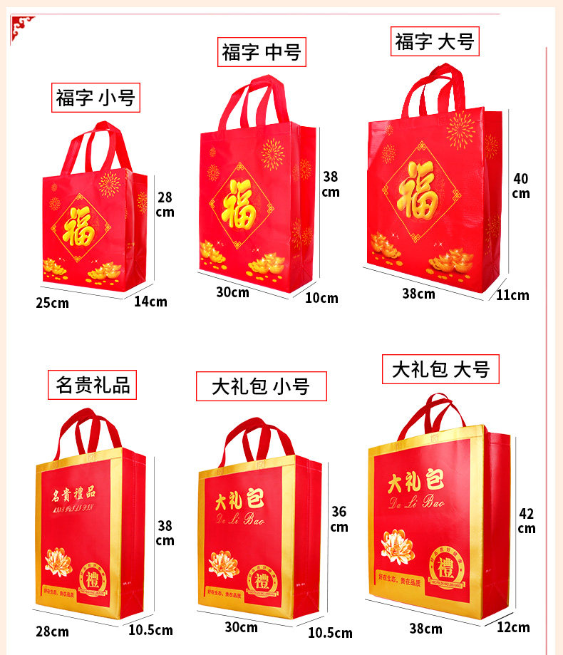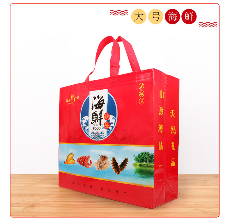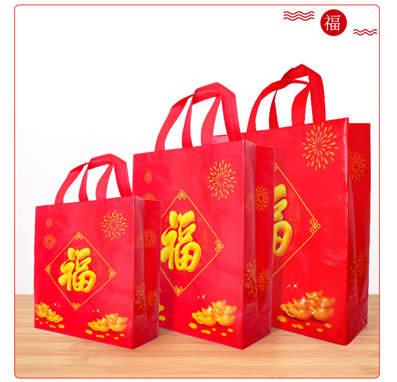 ギフトバッグ、ポータブル不織布福袋、赤いシーフード新年ギフトバッグ、フィッシュボール、タバコ、ワイン、お祝いバッグ、密封